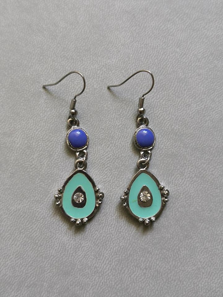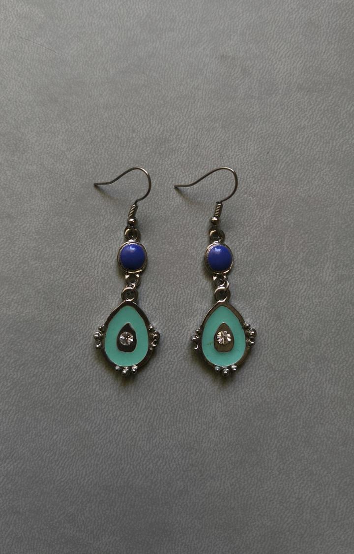 Этнические серьги с эмалью бирюза и ультрамарин. В центре каждой подвески посажен аккуратный кристалл, который красиво ловит свет. Стиль: Бохо, этнический, винтаж. Застёжка: Швензы-крючки. Артикул: 568214
