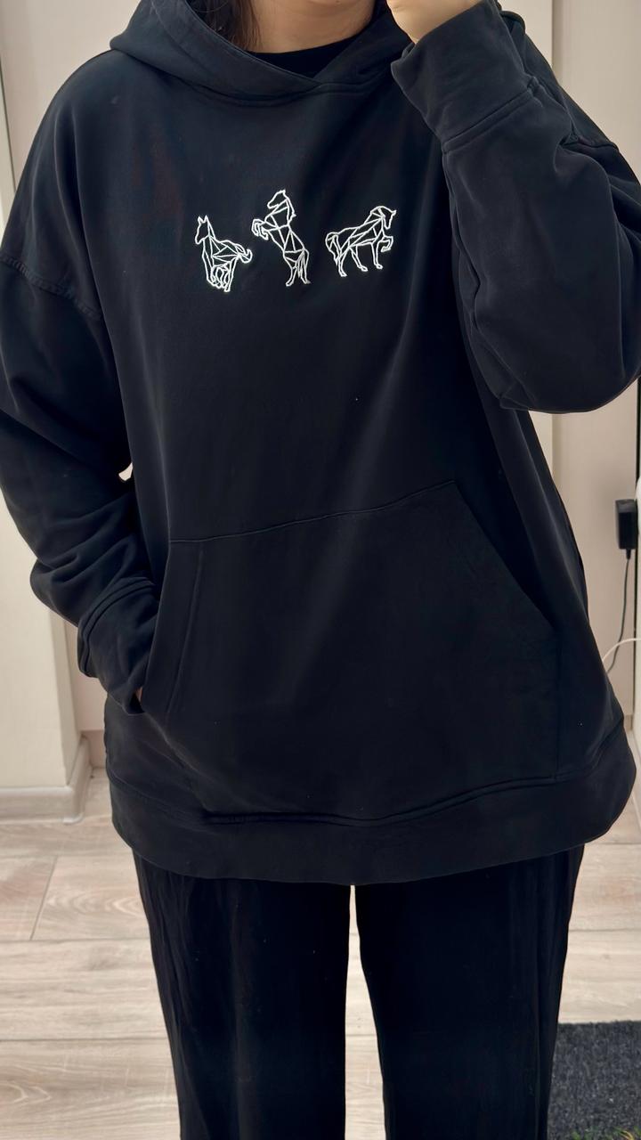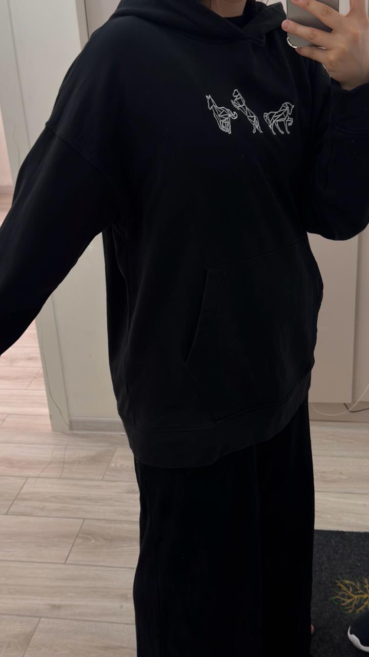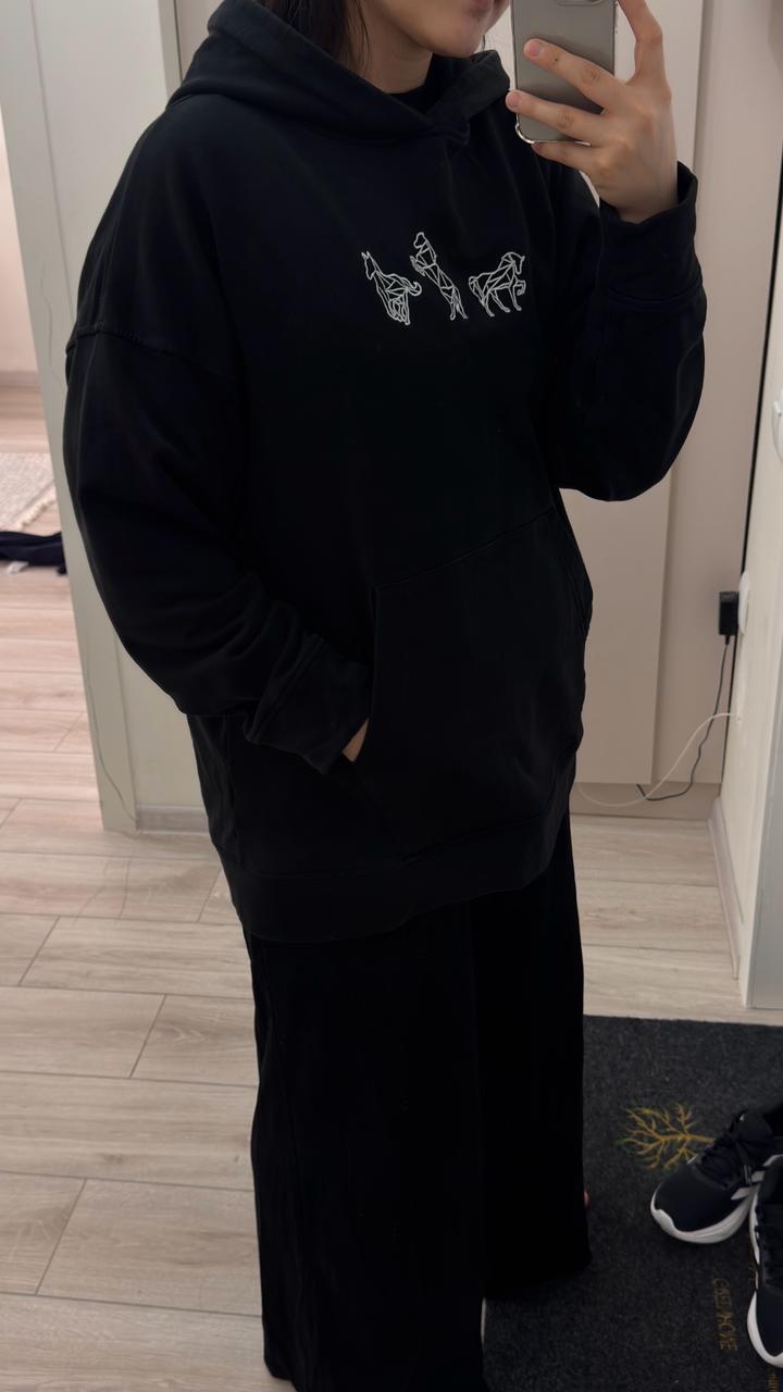 Черная базовая толстовка adili с казахскими элементами. Удобная, унисекс размер М, подойдет на С, М, Л. Артикул: 568218