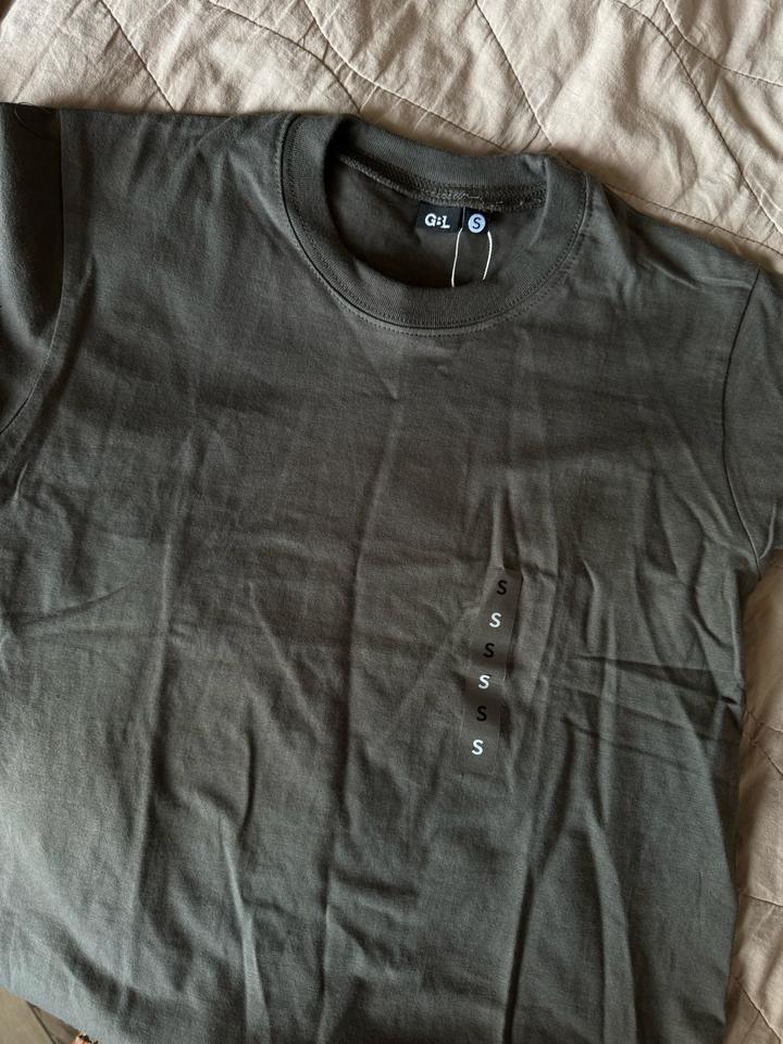 Супер базовая футболка на размер С. Мне нравится тут вырез, она закрыта и этим удобно для носки под рубашки и пиджаки. Цвет между хаки и темно серым. Корейский бренд. Артикул: 568240