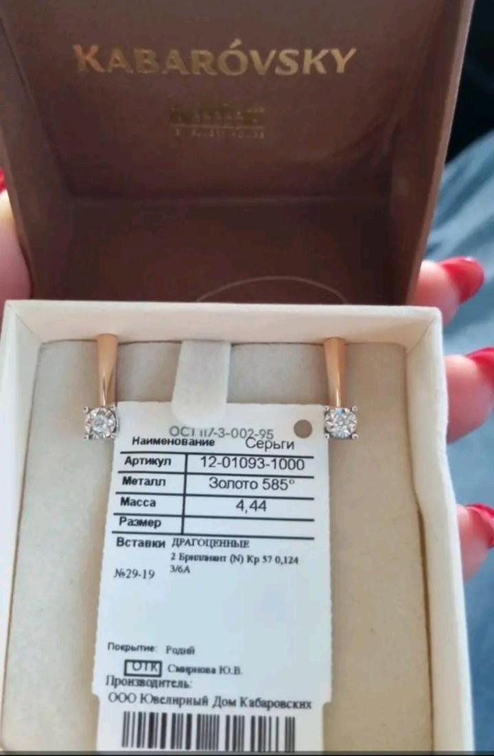 Продам абсолютно новые серьги, золото 585 проба, Россия завод Кабаровских, бриллианты природные натуральные Якутия, 0,124карат, вес 4.44гр, с биркой и пломбами, отлично подойдет для сырга салу. официальном магазине стоимость 854 тыс. Артикул: 568262