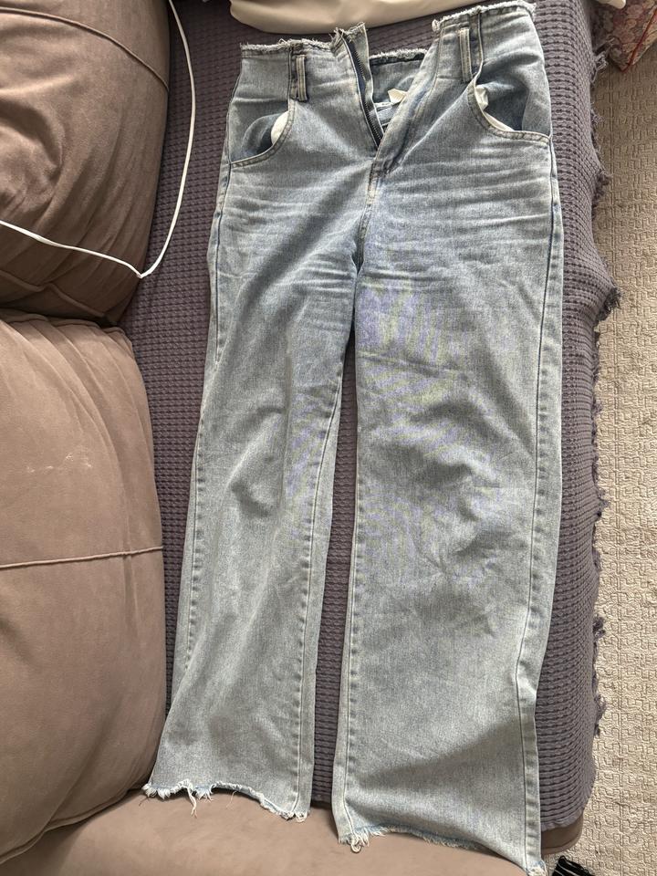 Джинсы без застежки, прямые. светло Голубого цвета. Особо без дефектов, продаю так как не подходит размер. Хорошо сидят на талии. Тонкие, подходят для лета. Артикул: 568292