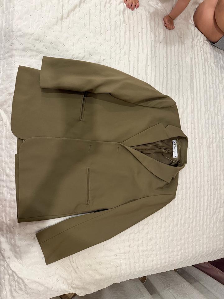 Темно зеленый/хаки пиджак бренда Zara. Размер L. Имеется запасная пуговичка. Артикул: 568324