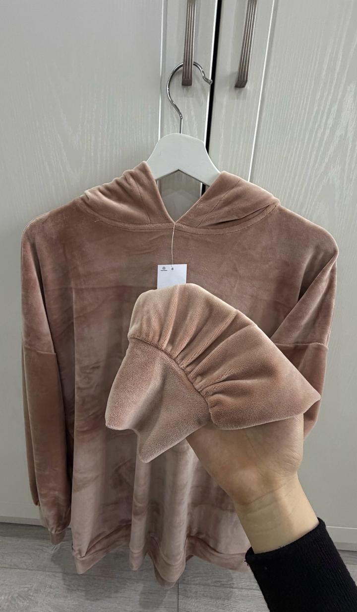 Худи, материал бархатный, цвет жемчужно розовый Рахмет оверсайз, подойдет на 44-46-48 Артикул: 568342