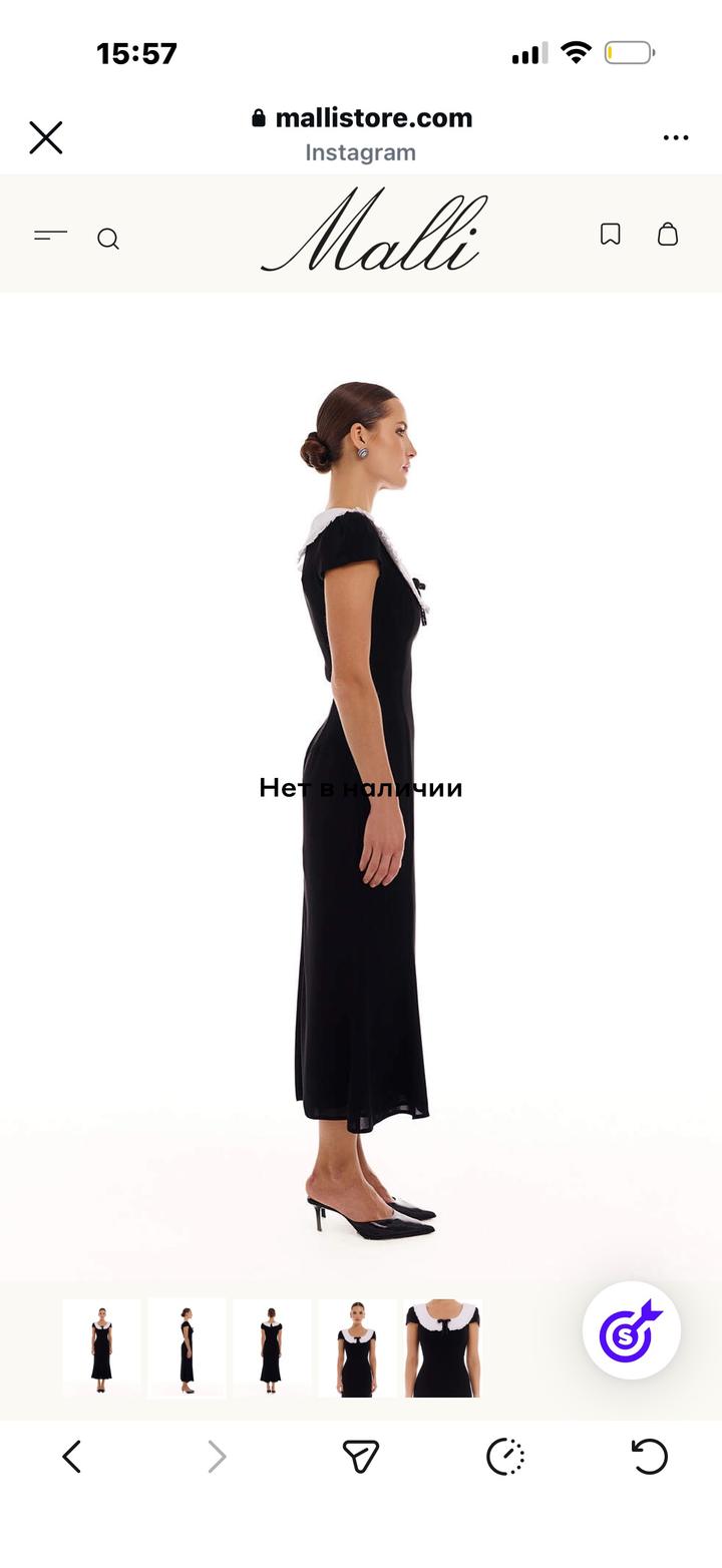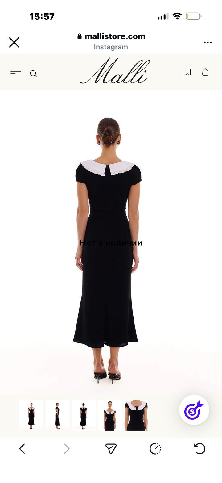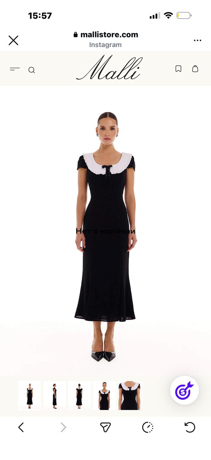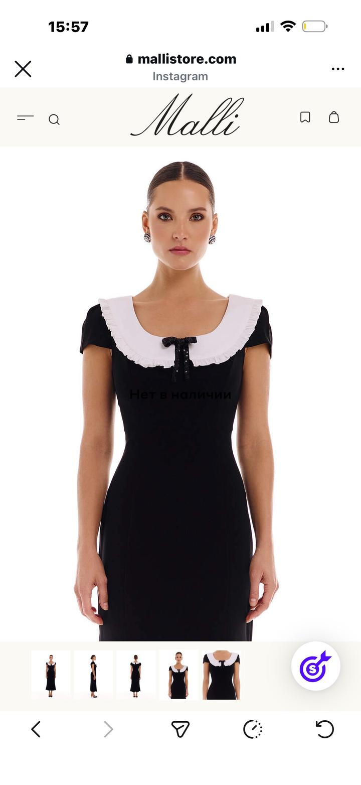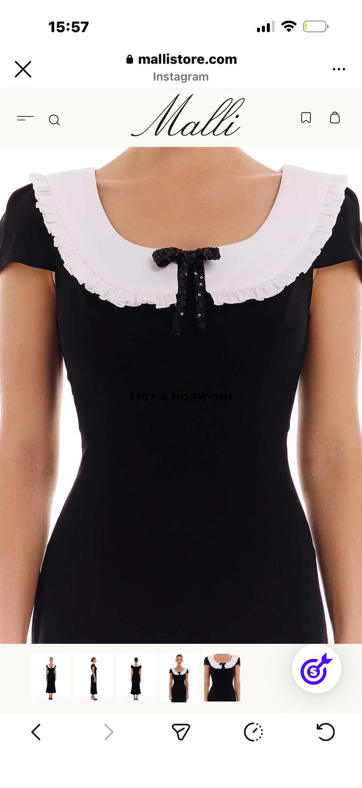 Продам новое платье «Merci» от бренда Malli💫 Абсолютно новое, с этикеткой. Размер не подошёл Качественная ткань, красиво сидит по фигуре.Платье приталенного силуэта из чёрной ткани длины миди с короткими рукавами и контрастным белым воротником с рюшами, украшенным чёрным бантом. Ткань итальянский креп. Состав: 92% обработанная шерсть 8% полиэстер Артикул: 568357