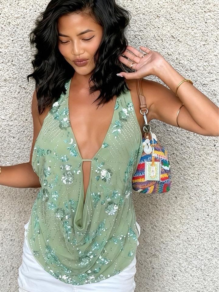 Новый зеленый топ с пайетками На резинке подойдет на s,M,L Артикул: 568415