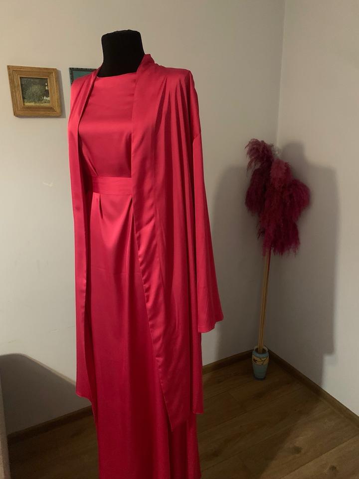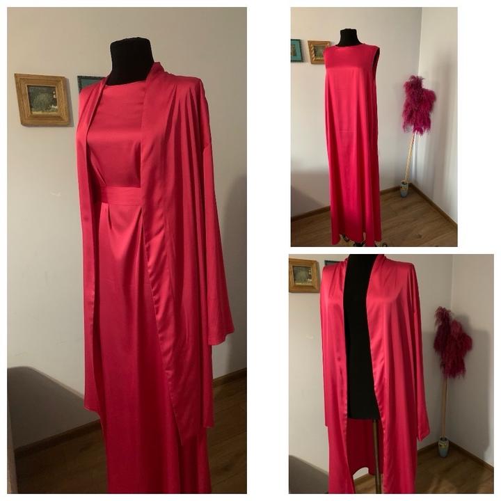 Роскошная вечерняя двойка из чистого шелка. Шикарнейшее качество ткани и пошива. Размер: 42-S (возможно подойдет на 44-М тоже). Цвет: алый, фуксия. Платье база и кардиган. Можно носить по отдельности. Приятно телу, не просвечивает. Новое, не ношеное. Сшито на заказ. Длина платья - макси, накидка - ниже колен. Приятная цена для натурального шелка. Пишите, звоните. Вечерние платья Алматы Артикул: 568416