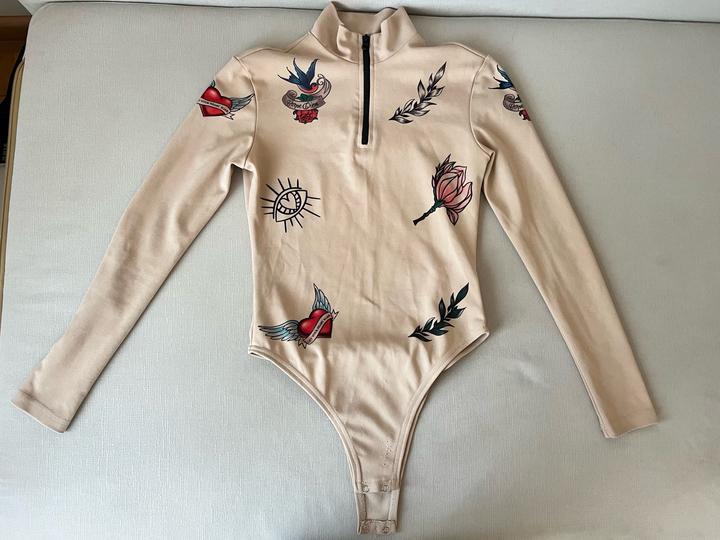 Боди с тату, размер XS, S Есть немного зацепки где застежки в районе трусиков Артикул: 568419
