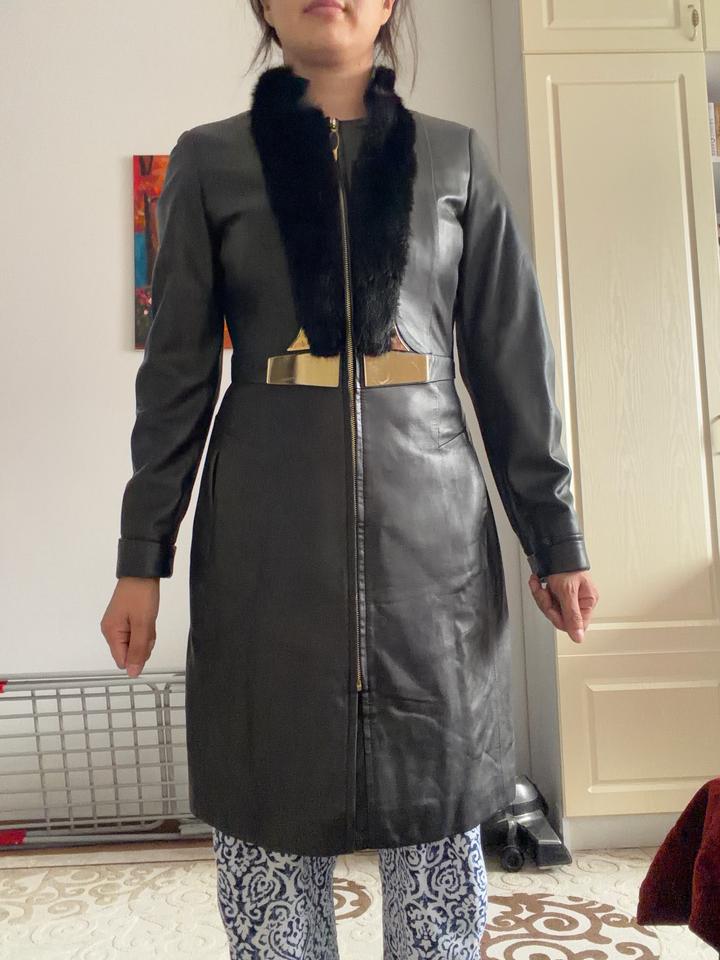 Черное кожаное пальто с мехом (Размер S) 🖤 Элегантное кожаное пальто Размер: S Состояние: отличное • Вортник натуральная норка • Приталенный силуэт • Качественная натуральная кожа • Золотистый пояс — смотрится дорого • Подходит на весну-осень Очень стильное и женственное пальто, хорошо подчеркивает фигуру. 📍Размер: S 📍Состояние: отличное Артикул: 568437