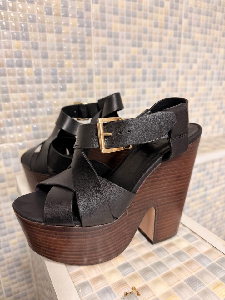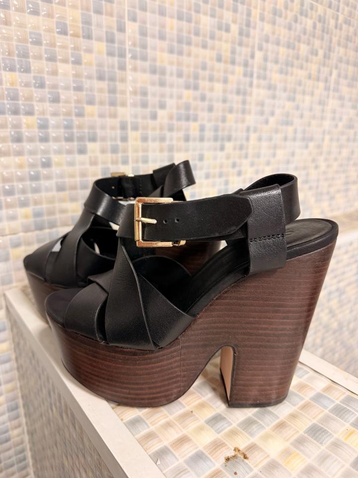 Стильные босоножки на массивной деревянной платформе Элегантная и дерзкая модель, которая идеально дополнит летний гардероб. Сочетание натуральной черной кожи и фактурного дерева создает актуальный образ в стиле бохо-шик или современной классики. Материал верха: Высококачественная натуральная кожа черного цвета. Перекрещивающиеся широкие ремешки обеспечивают отличную фиксацию стопы. Дизайн: Открытый мысок и регулируемый ремешок на щиколотке с классической золотистой пряжкой для комфортной посадк Артикул: 568469
