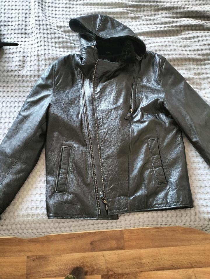 Черная мужская дубленка, Турция, натуральная кожа, овчина, размер 48, с капюшоном Артикул: 568588