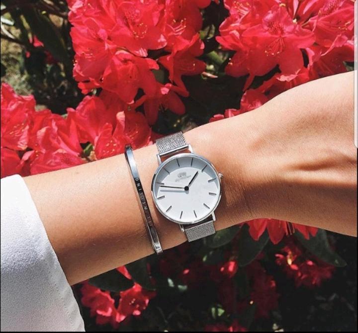 Наручные часы •28 мм •серебристый •нержавеющая сталь •тонкие закругленные стрелки •кварцевый механизм •круглый корпус •плетеный браслет Артикул: 568707