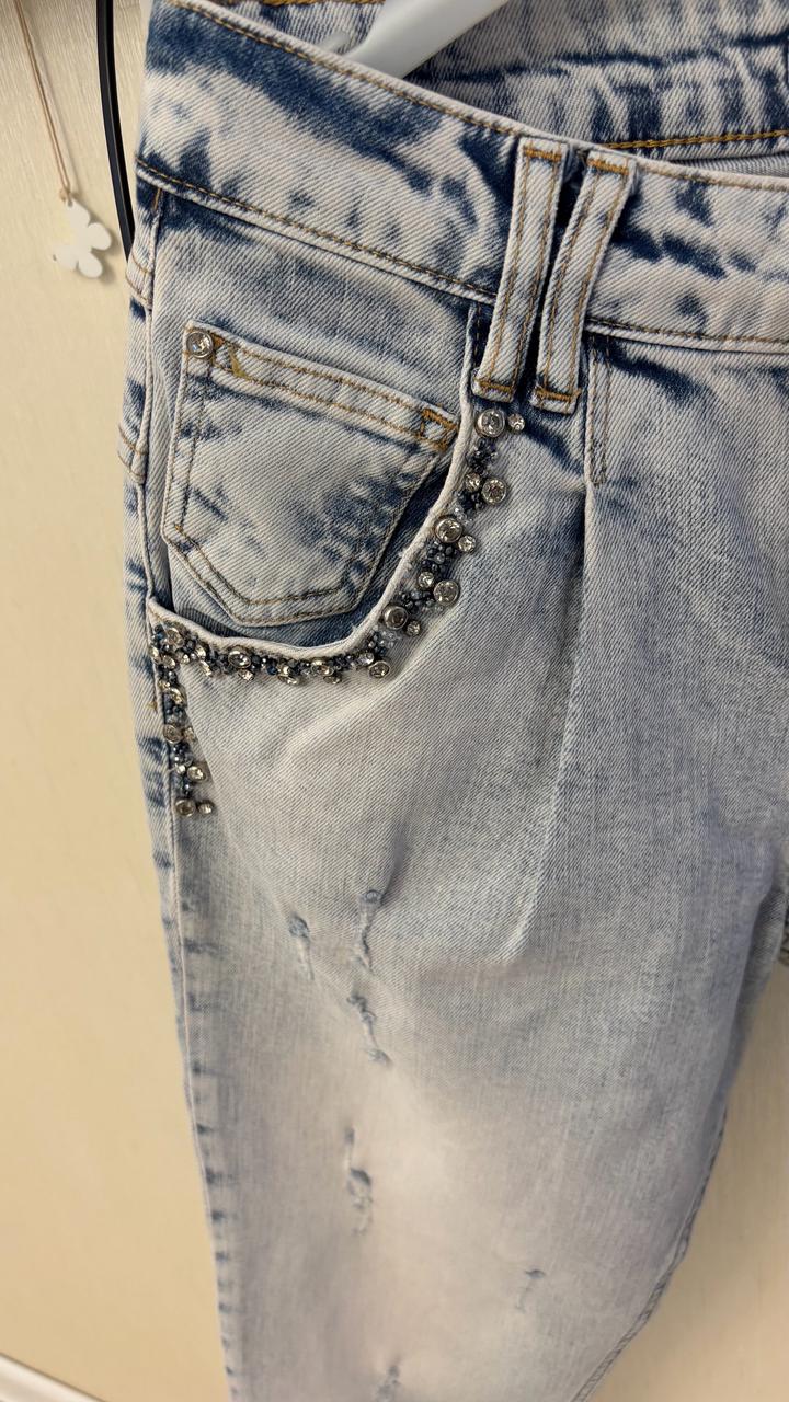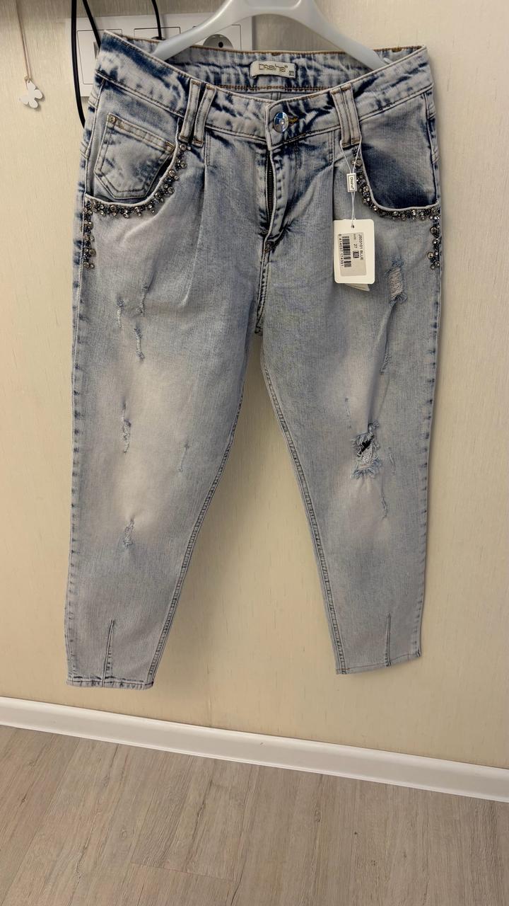 Турция брендінің джинсый шалбары, матасы хлопок терлетпейді, своровский тастармен тігілген сапасы өте жоғары футболка, рудашкалармен өте әдемі үйлеседі. Киілмеген жаңа джинсы Артикул: 568715