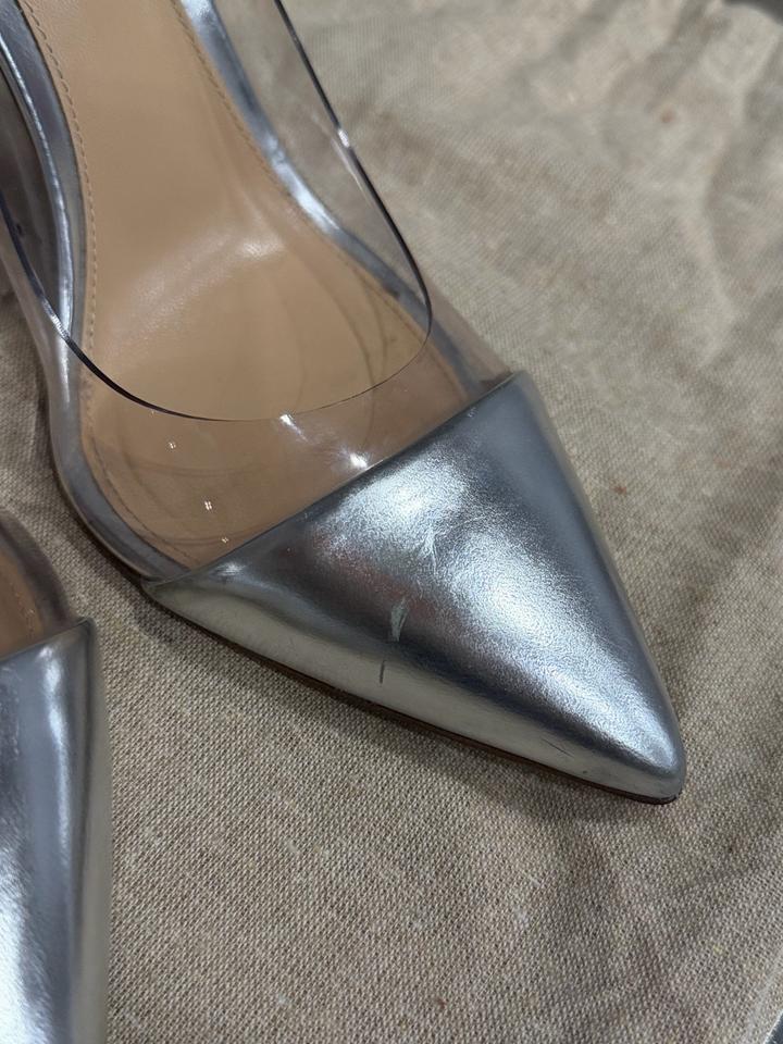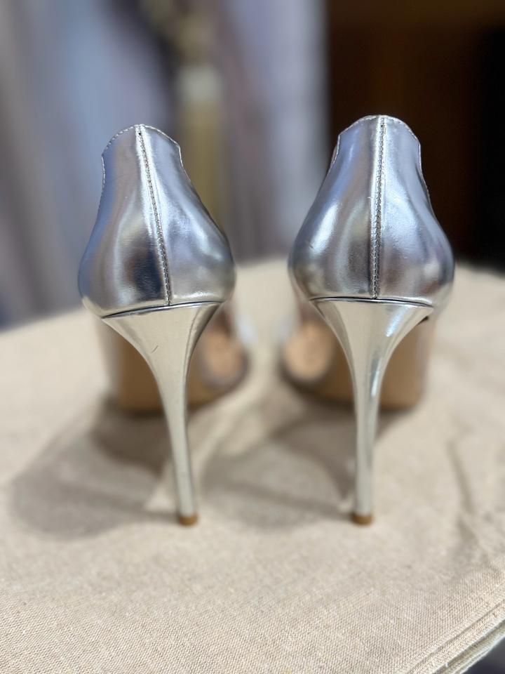 Прозрачные туфли с серебряными элементами. Очень удобные. На левой туфле носик слегка поцарапан с боку. Артикул: 568717