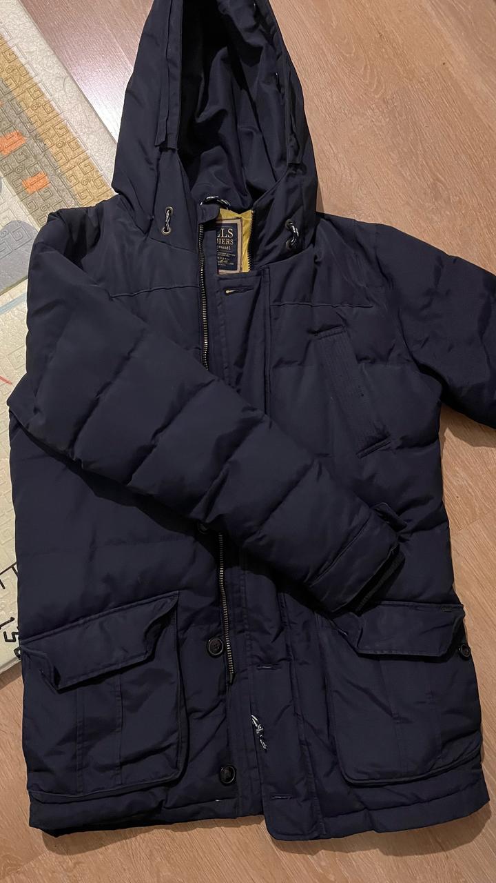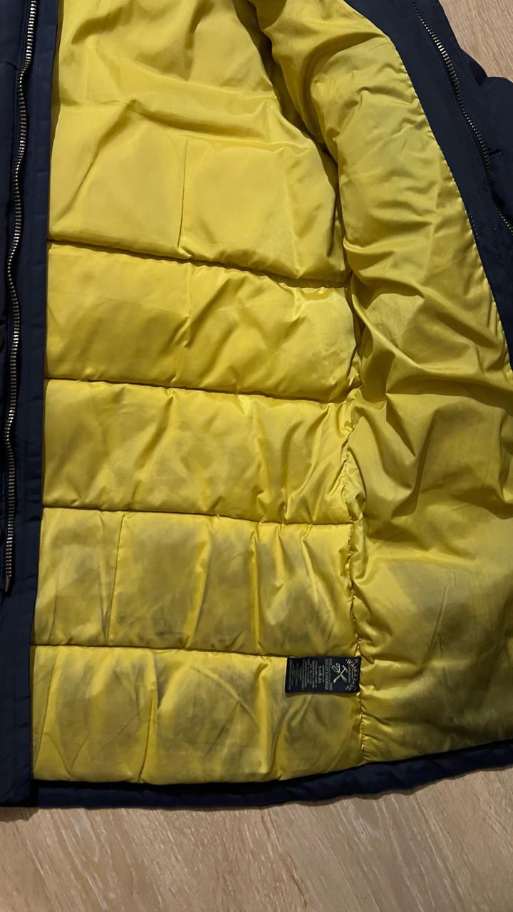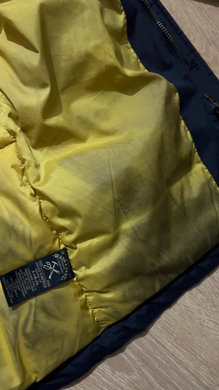 Пуховик привезен с Амстердама. На пуху. Качество шикарное. Но не стирала, тяжелый. Теплый очень. Внутри от синих джинс стал как бы грязным, но это краска от джинс. Состояние хорошее, нет ни дырок, ни потертостей. На фото состояние. Артикул: 568719