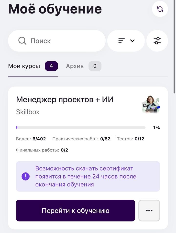 Даюсь доступ к курсу менеджер проектов + ИИ от Learna (Skillbox) Артикул: 568777