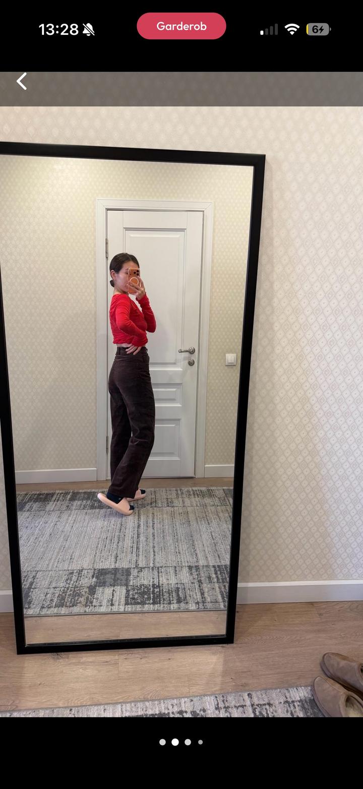 Покупала в казахстанском бренде Ganni. Состояние нового , качество отличное. Размер хс, но они большимерят. У меня талия 66 см, бедра 91 см но при этом мне в талии и бедрах свободно. Артикул: 568909