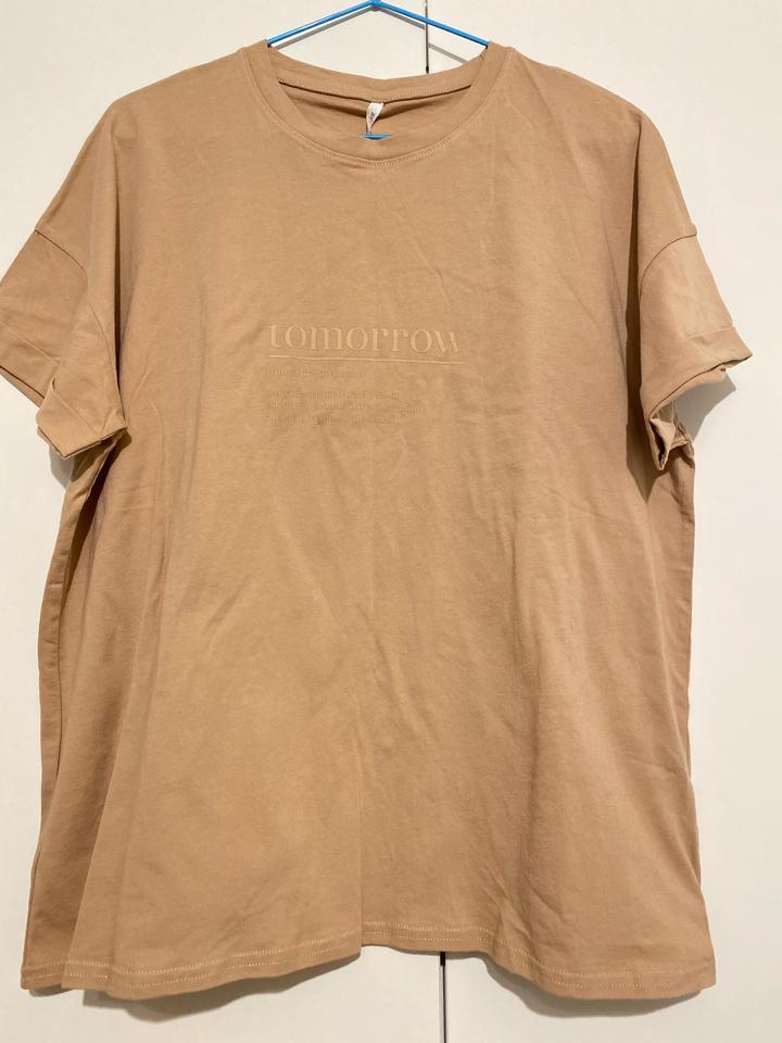 Оверсайз-футболка Befree, новая с этикеткой, насыщенного бежевого цвета, линия плеч спущена, рукава подвернуты. 100% хлопок, материал плотный и держит форму. Размер XS, но подойдет и на 44-46 размеры. Артикул: 568936
