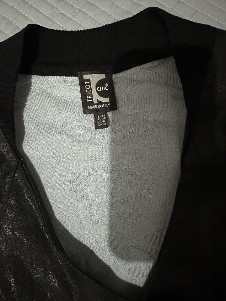 Продам красивую кофточку от премиального итальянского бренда Tricot Chic, несколько видов ткани, черная часть полностью лён! Размер 42-44 Артикул: 569003