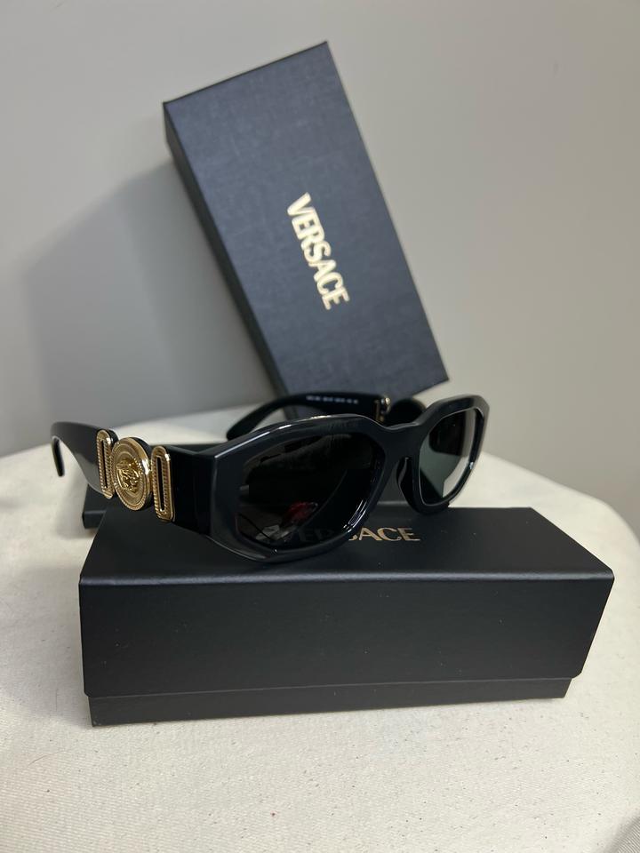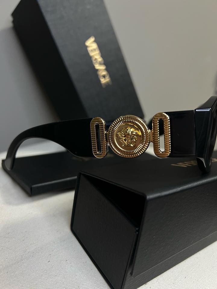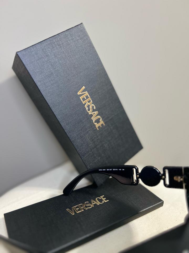 Новые солнцезащитные очки Versace оригинал. Модель унисекс. В наборе коробка, чехол для очков , пыльный мешочек, паспорт в котором есть QR код, по нему можно пройти верификацию. Произведено в Италии компанией Luxottica Group. Очки очень стильные, значок медузы сделан из металла. Артикул: 569182