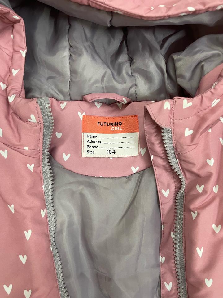 Демисезонная куртка Futurino Girl, размер 104 — лёгкая, тёплая и комфортная для повседневной носки. Нежный дизайн с сердечками, аккуратный крой и качественная подкладка — отличный вариант на весну и осень. Куртка в отличном состоянии, без дефектов. Артикул: 569324