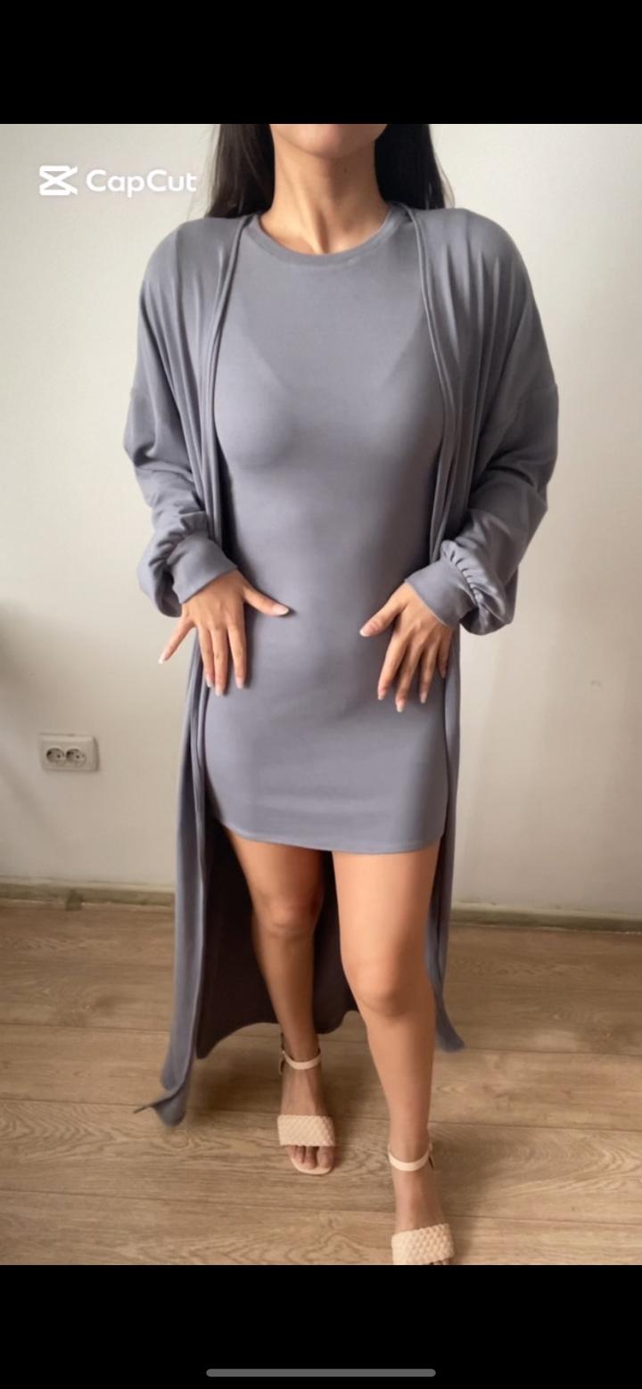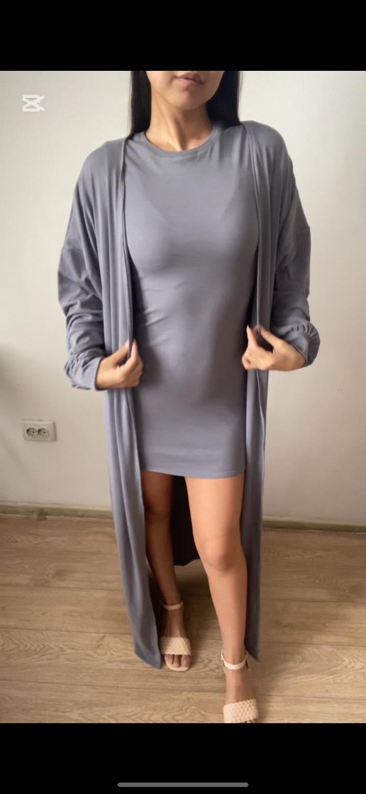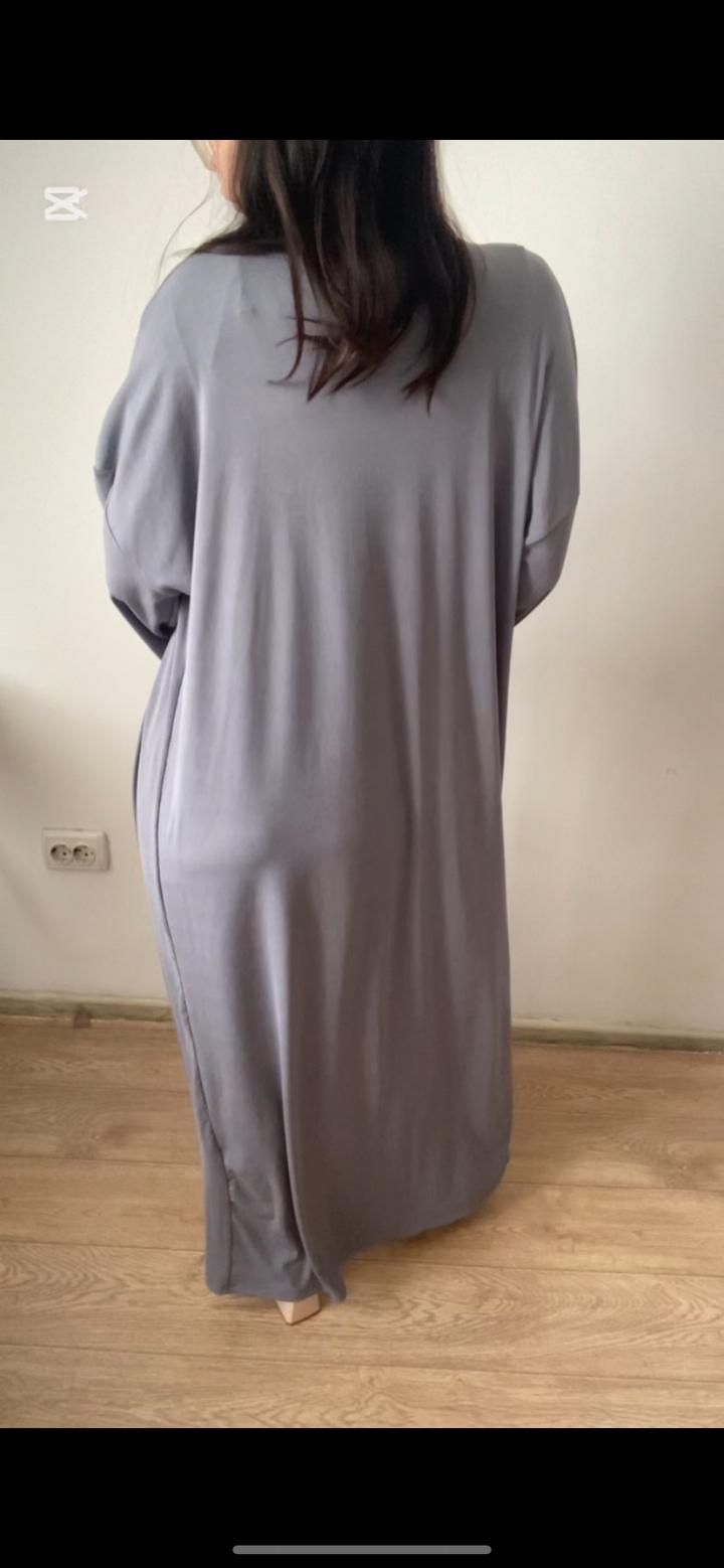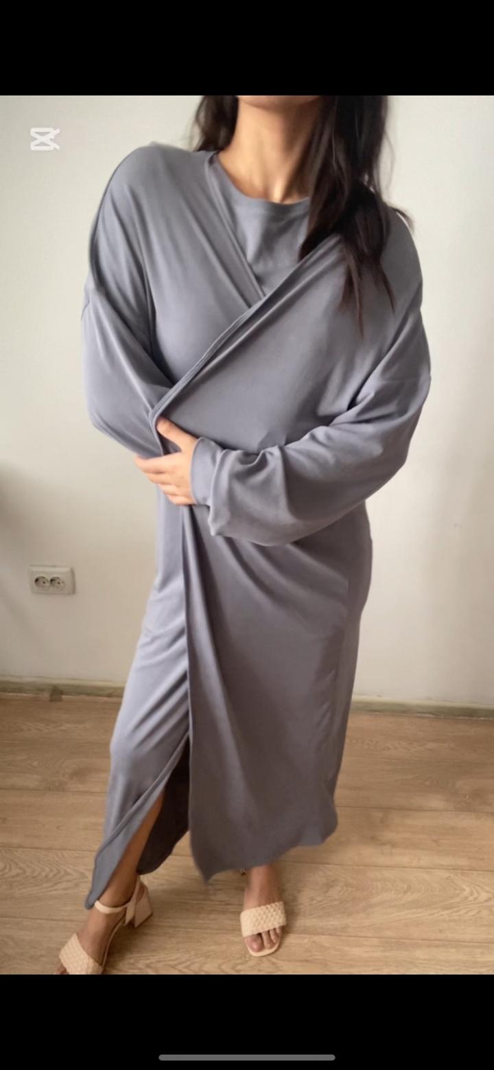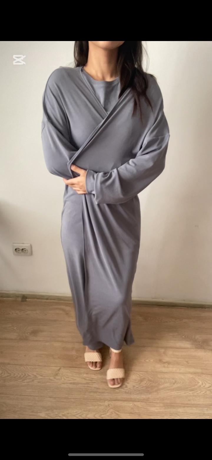 Двойка состоит из короткого платья и абайки. В приятном сером цвете. Платье и абайку можно носить по отдельности. Размер М 44. Качество супер, берите девочки не пожалеете. Цена 6000тг❤️ Артикул: 569377
