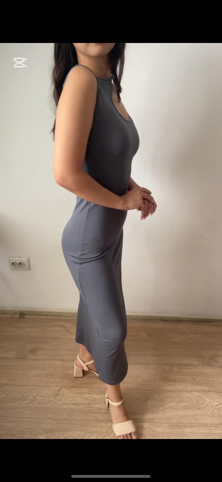 Шикарное платье в супер необычном стиле для эффектного образа. Платье в графитовым цвете с акцентным разрезом сбоку. Размер на 42 и 44. Идеальная на весну и летом. Комфортная мягкая ткань приятная к телу. Цена 6000 тенге. Артикул: 569558