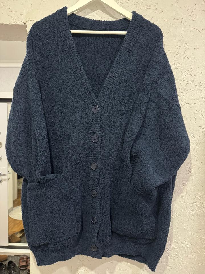 Женский кардиган Оверсайз до 56 размера подойдет, цвет темно синий. Артикул: 569659