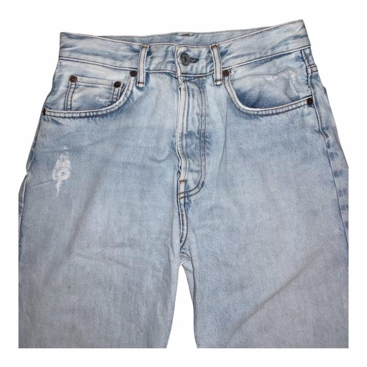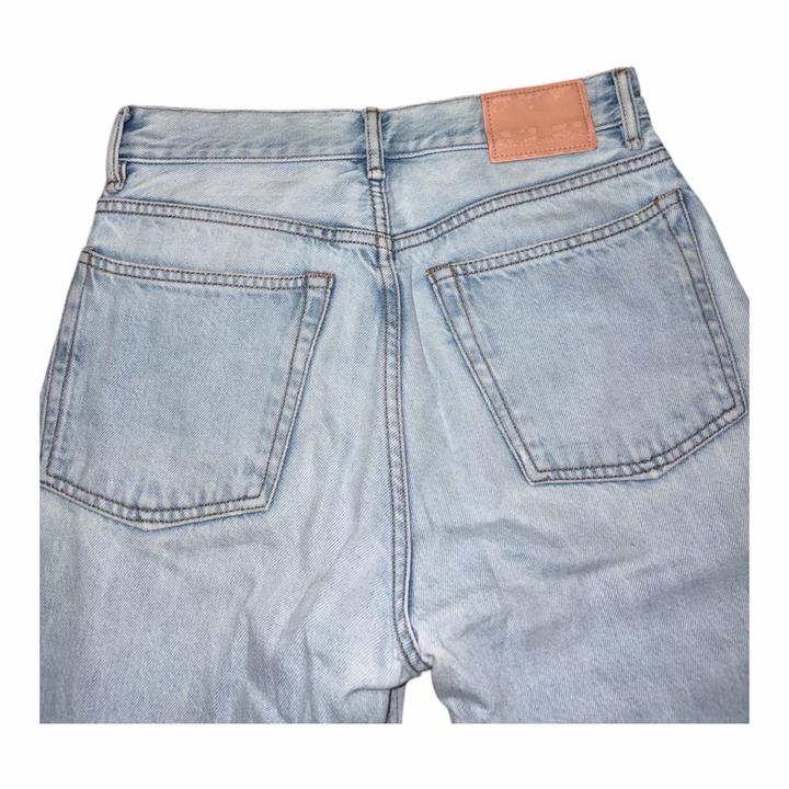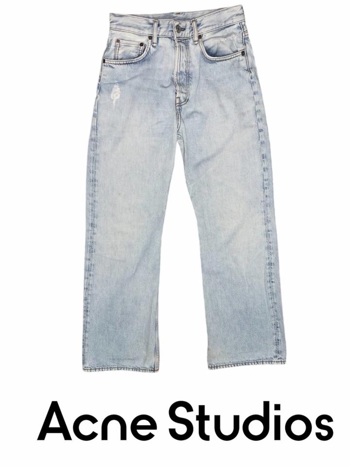 В хорошем состоянии, оригинал. Кожаная брендированная вставка сзади пояса, латунная фурнитура и замок YKK. Посадка высокая, низ штанин спускаются шире. Замеры: Талия: 67.9 см Бёдра: 83.2 см Посадка: 29.8 см Длина по внутреннему шву: 78.7 см Ширина низа штанины: 50.8 см Артикул: 569748
