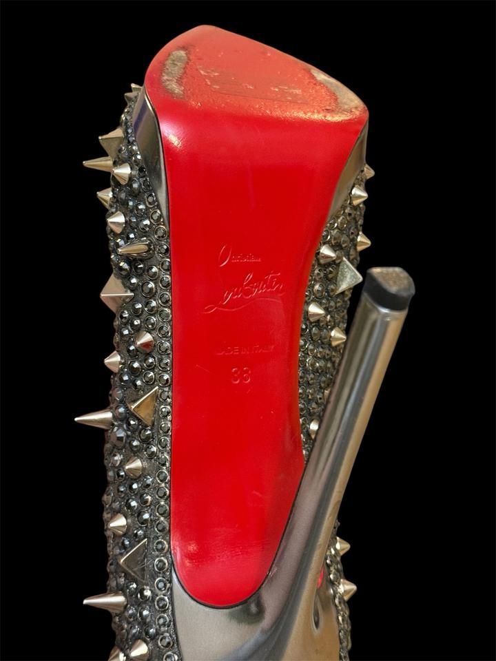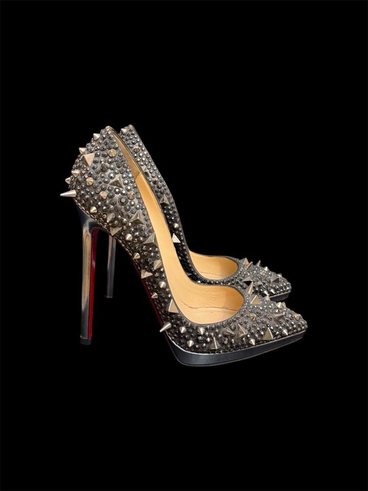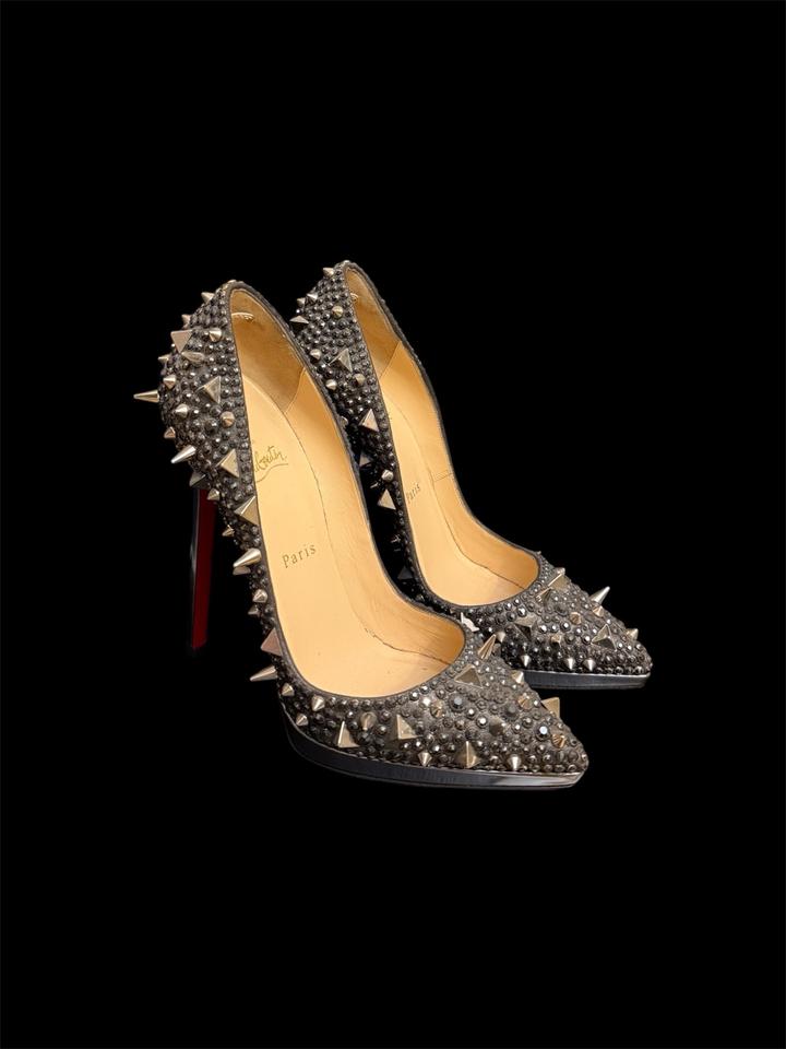 Christian Louboutin Pigalle Spikes - культовая модель. Это не просто туфли, а икона начала 2010-х от Louboutin. Эффектная пара с острым носом и шипами, создающими тот самый «агрессивный» люкс. Состояние отличное: надевались несколько раз, аккуратная носка, все шипы на месте, форма сохранена. Есть естественные следы на подошве. Каблук ~120 мм. Без коробки. Редко встречающаяся модель на ресейле и в таком состоянии. Продажа без спешки. Артикул: 569771