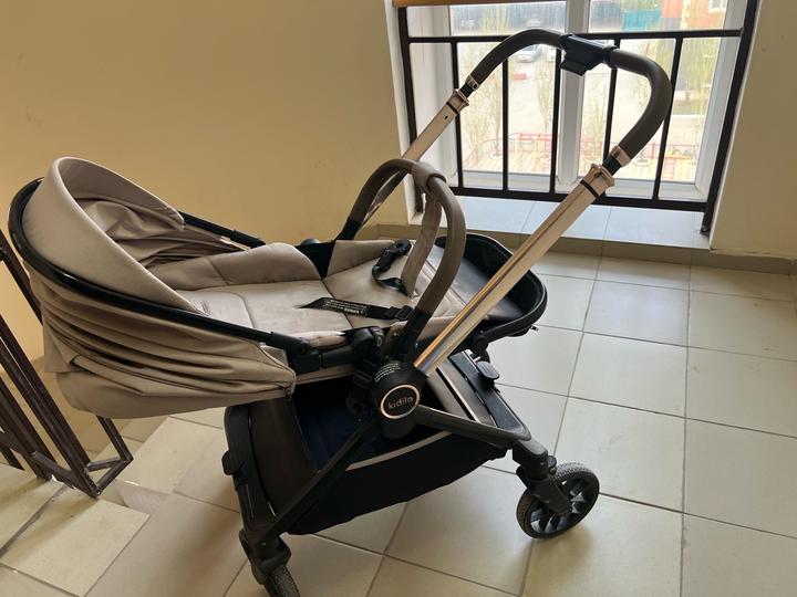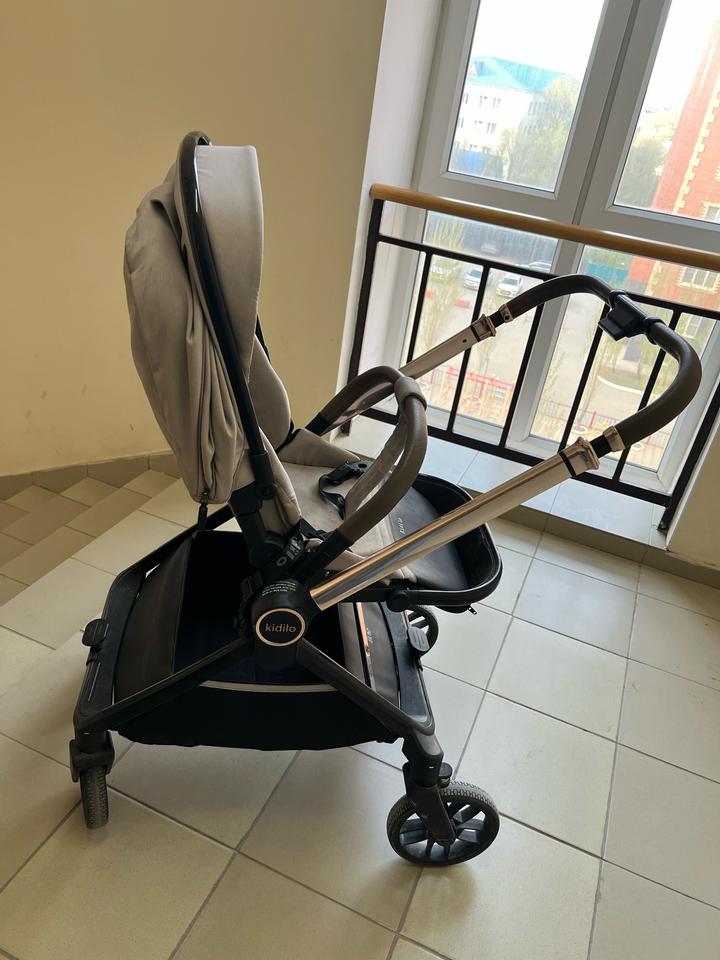 Коляска kidilo Бежевое, перекидная ручка При перекидывании ручки одно переднее колесо не разворачивается (поправимо). Есть чехол на ноги Артикул: 569778