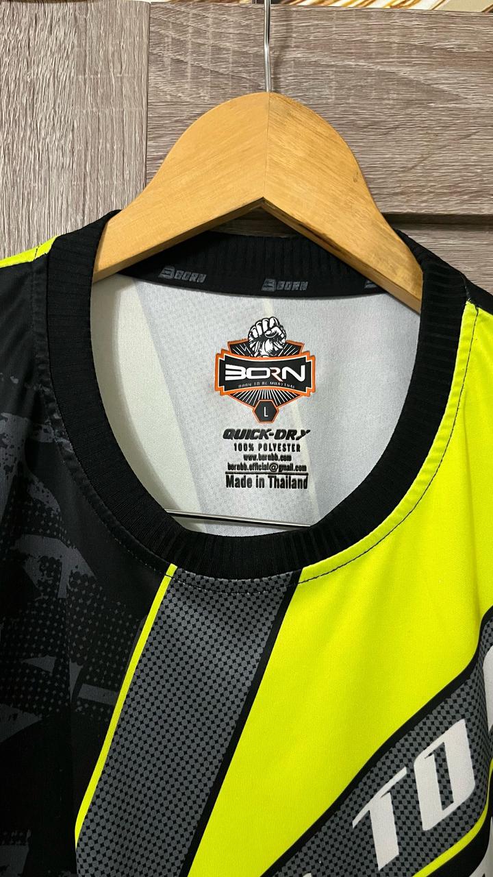 Купили в Тайланде Оригинал. Бренд BORN — это качественная экипировка прямо из Таиланда. 100% полиэстер, технология Quick-Dry (быстро сохнет). Яркий неоновый принт "Born to be Muay Thai". Размер L. Артикул: 569893