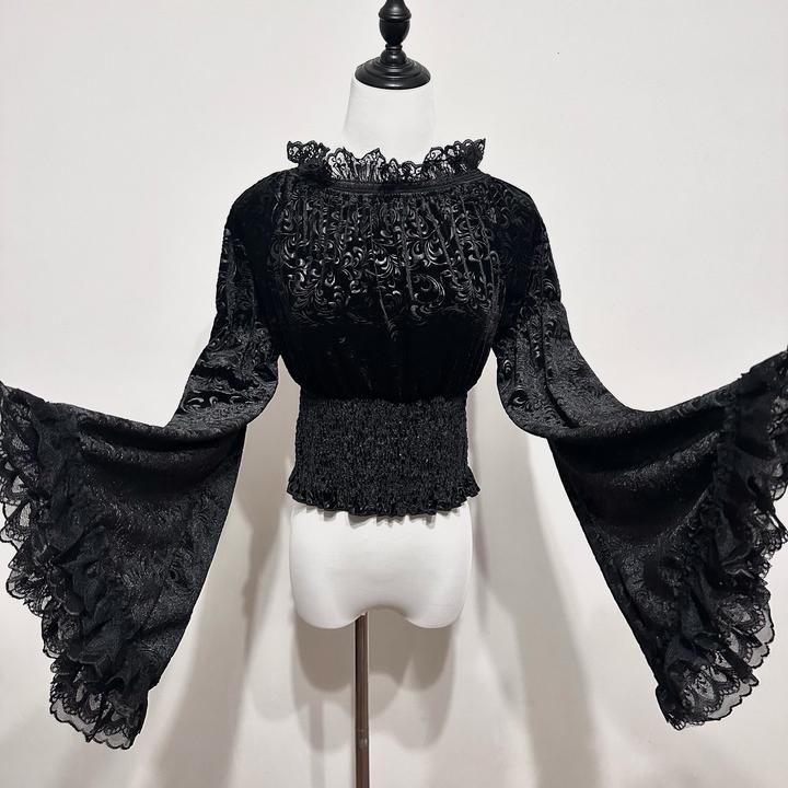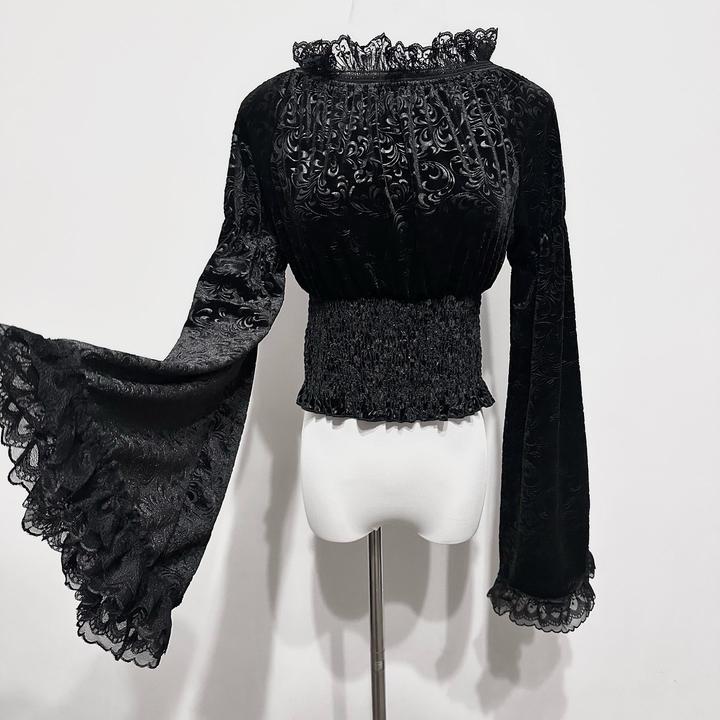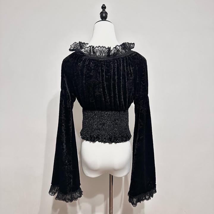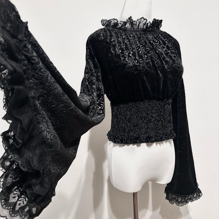 Готическая модная бархатная блуза из плотного бархата кружевнаяS