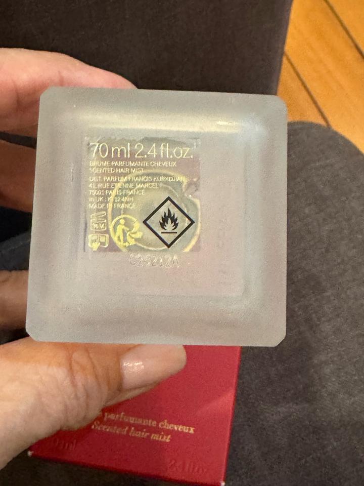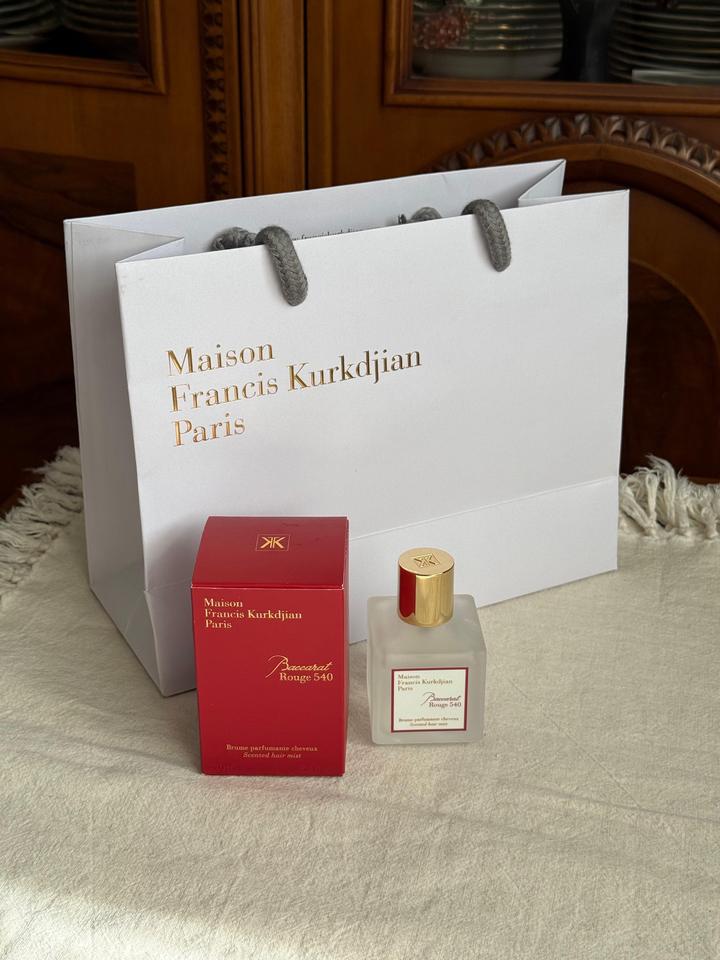 Парфюмированная дымка для волос Baccarat Rouge 540 деликатно покрывает волосы нежным ароматом, делая волосы мягкими благодаря своей легкой, воздушной текстуре. Дымка не утяжеляет волосы, придает ощущение свежести! Использовано всего 10%! Почти полный флакон! В комплекте фирменный пакет и коробка! Строго оригинал! Покупала в Дютти фри 70 мл Артикул: 569958