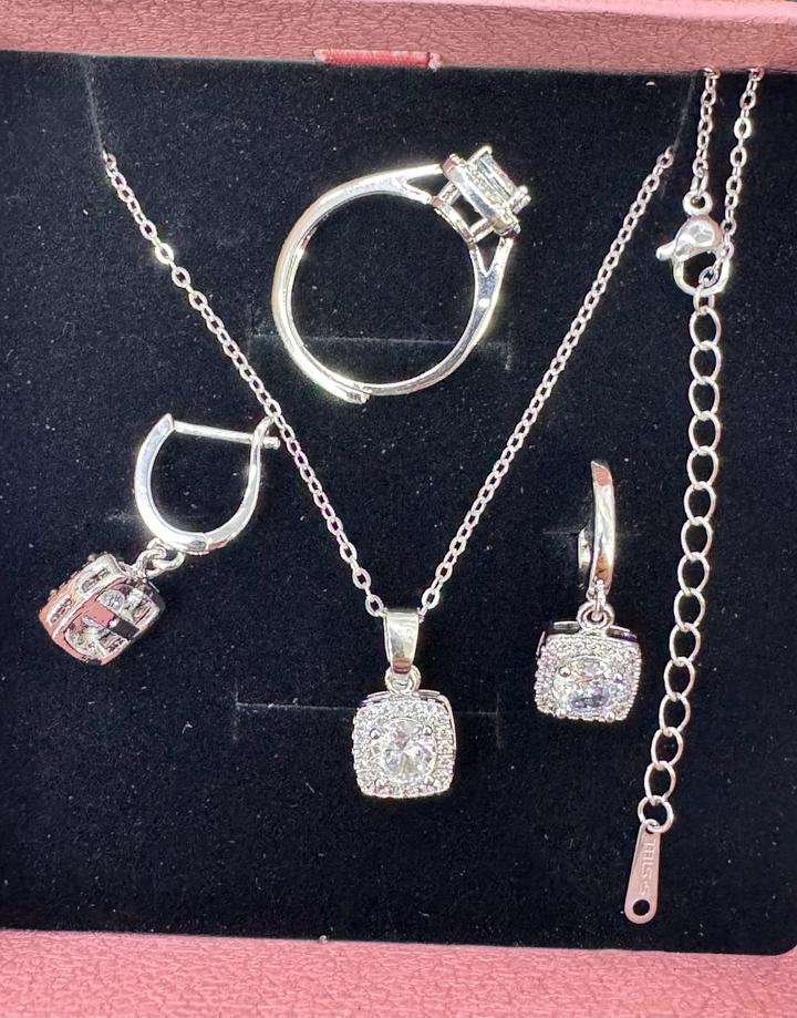 Прекрасный набор из трех украшении. Удобная и надежная застежка в серьгах. Для тех кто любит сиять, и быть в центре внимания! Артикул: 569987