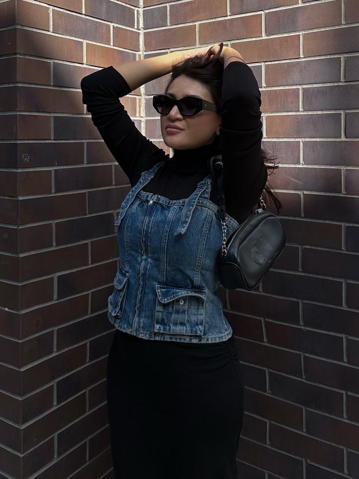 Джинсовый корсет В носке 2 раза Сзади на резинки , спереди молния Лямки регулировать можно Артикул: 570063