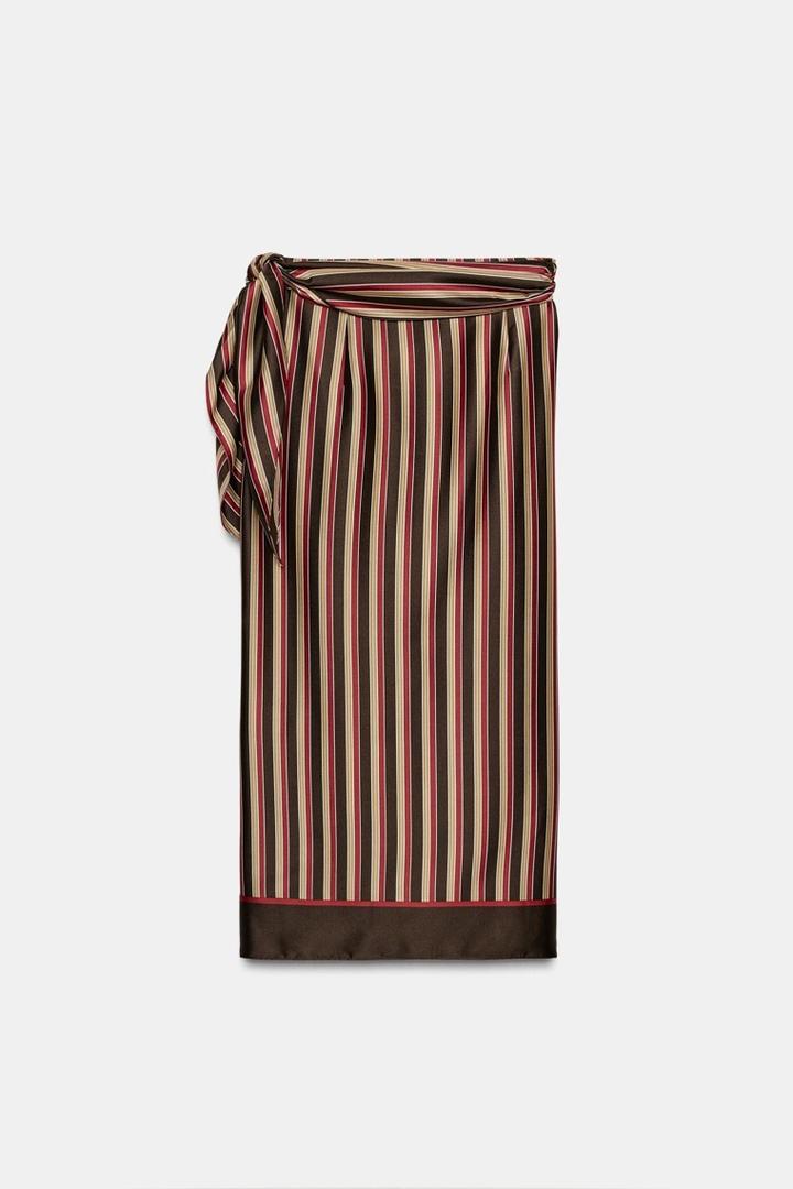 Юбка-карандаш средней посадки с принтом в полоску. Прямой низ. Регулируемое боковое обтягивающее крепление на завязках Размер М Артикул: 570074