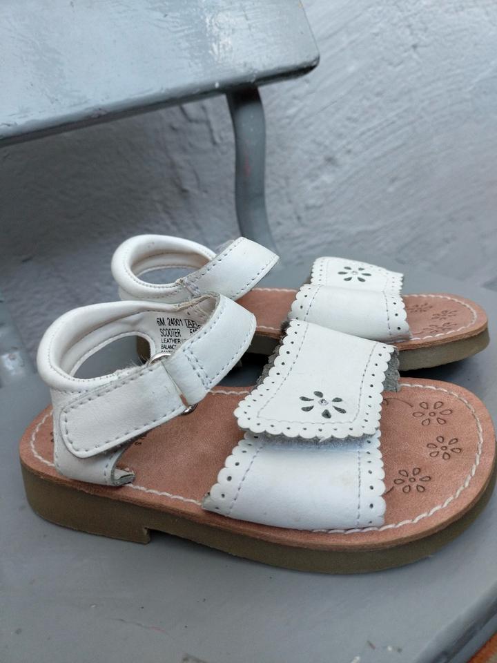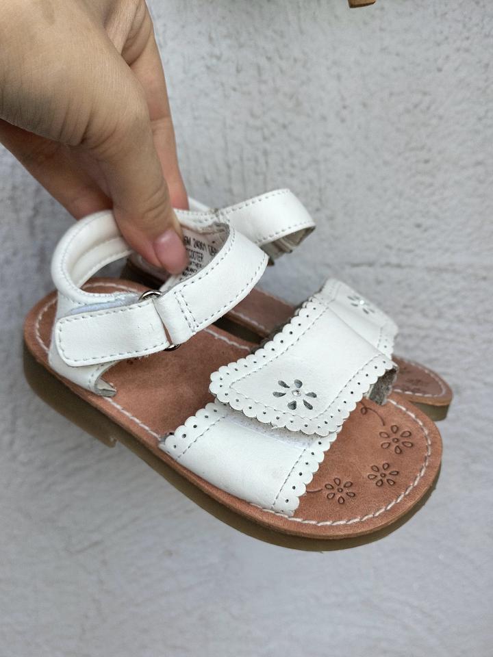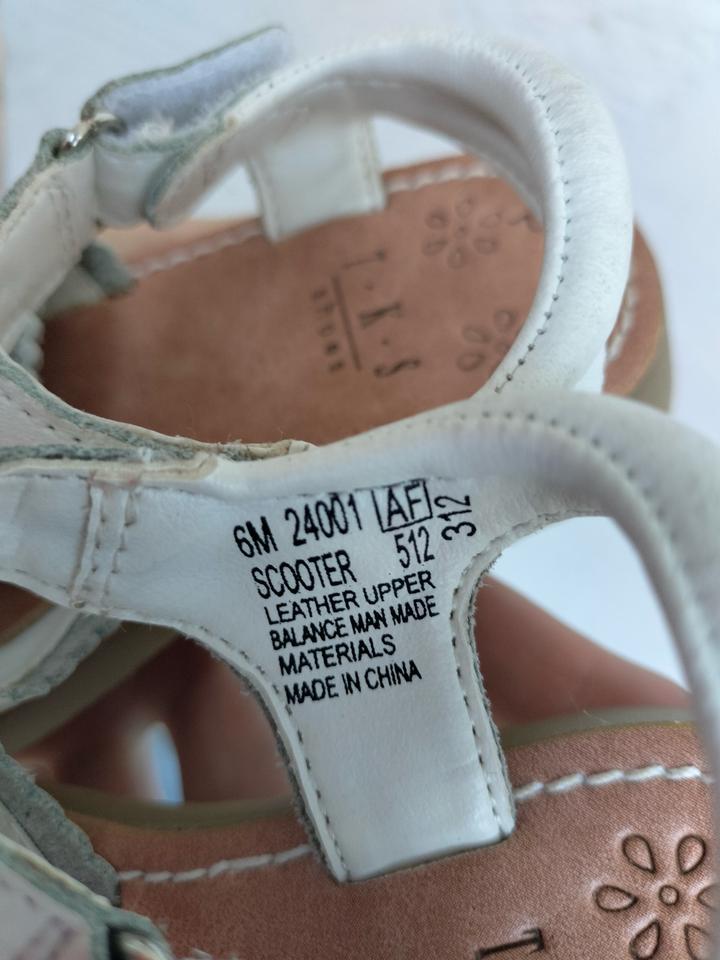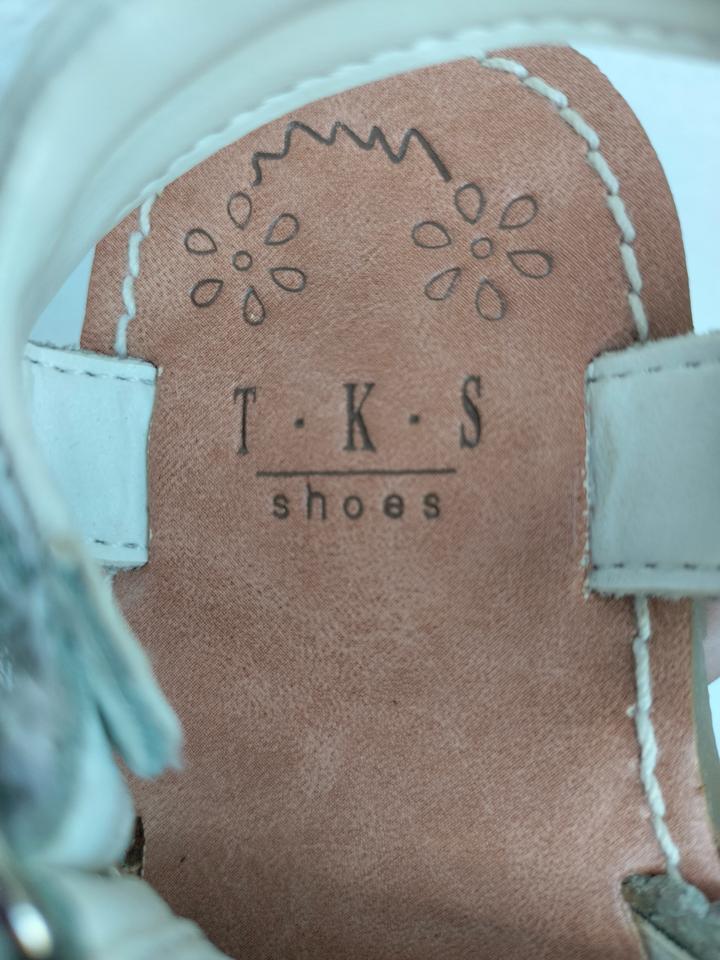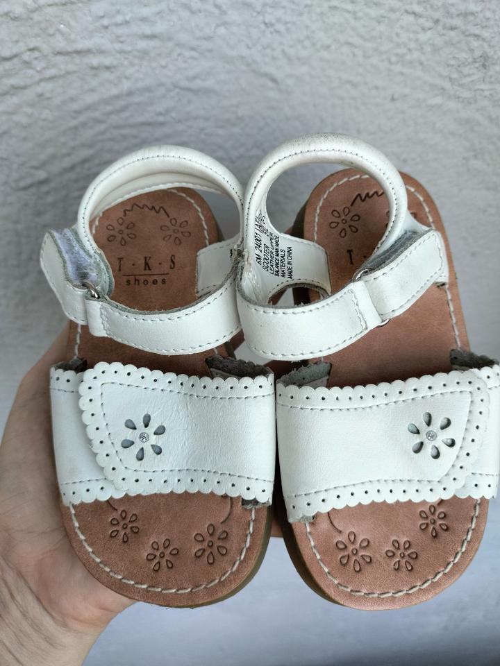 Сандалии белые, кожаные американского бренда ТKS- Tkees. Застёгиваютсяна липучке спереди и имеют регулируемые ремешки на липучках. Размер 6м Артикул: 570077
