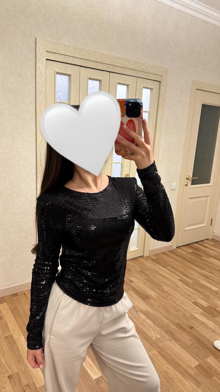 Красивый лонгслив с блестками, один раз в носке) С плечиками, которые красиво оформляют плечи🤍 Размер S Артикул: 570087