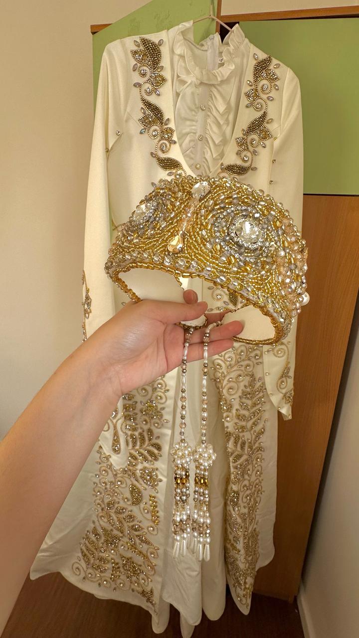 Қыздар, Ұзатуда киген көйлегімді сатамын. Бір рет қана киілген. Барлық тастары орнында. Ручная работа. Бойы 163 см-ден биік емес қыздарға жарасады. Ободок бірге жүреді. Басқа тағатын ободок та ручная работа. В цвете Айвори. Очень плотная ткань. Ішіндегі көйлегі отдельно жүреді. Артикул: 570089