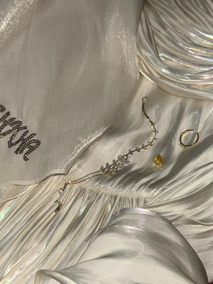 Молочное легкое платье из органзы.Приталенный верх и свободно спадающая длинная юбка.Рукава длинные с воланами.Подходит для мероприятий: свадьба, никах, фотосессия, праздник. Надевала 1 раз. Рост 170-171см. Артикул: 570117