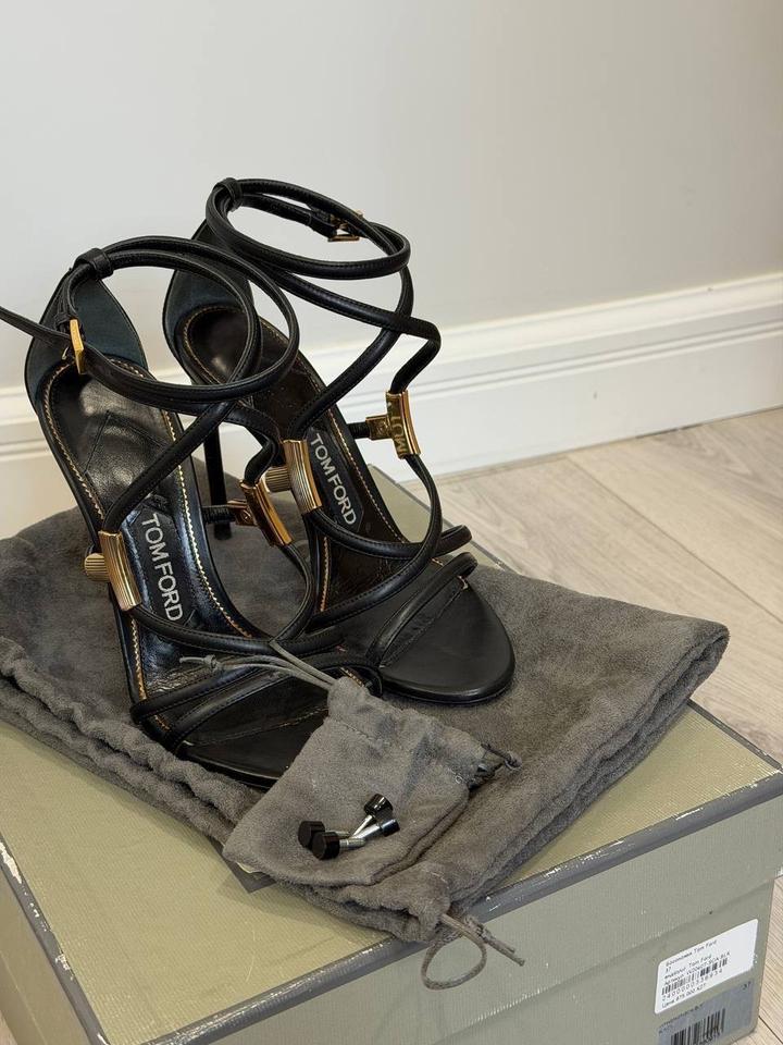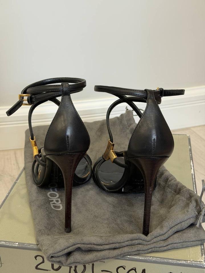 Очень красивая и эффектная модель с фирменной золотой фурнитурой. В отличном состоянии, надевались пару раз. Пыльник, коробка, дополнительные набойки в комплекте. Артикул: 570122
