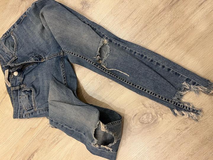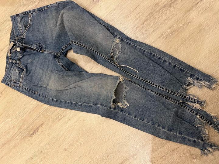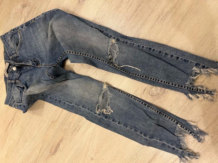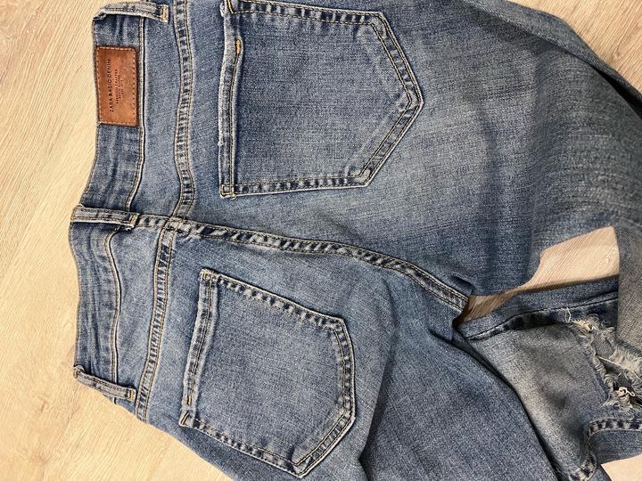 Прванные джинсы Zara, стильно смотрятся. Особенно низ, джинсы в обятяг. Очень тянутся джинсы, поэтому красиво смотрятся на худеньких девушках. Подчеркивают фигуру. Как раз на лето джинсы Артикул: 570178