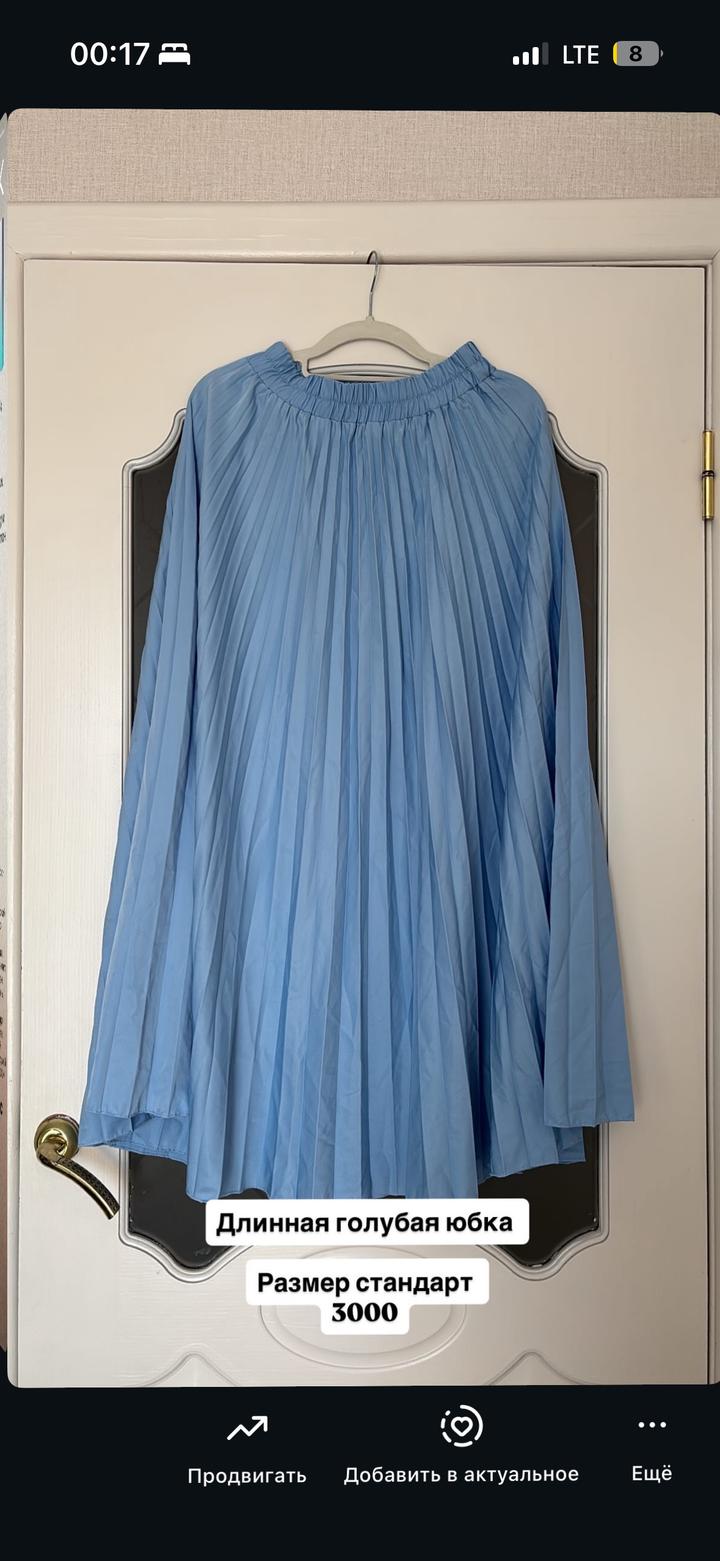 Голубая Юбка длинная плиссированная Размер стандарт. В отличном состоянии. Артикул: 570188