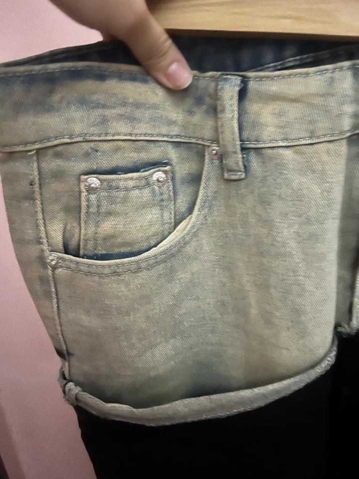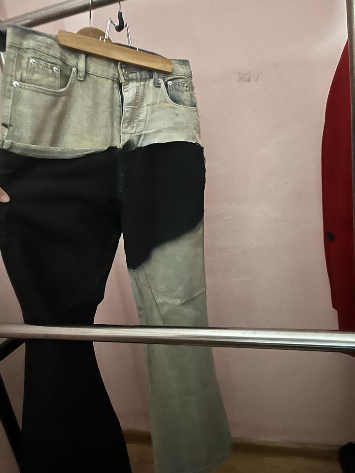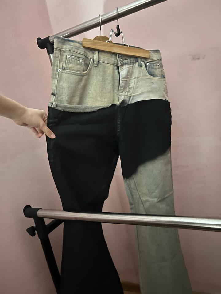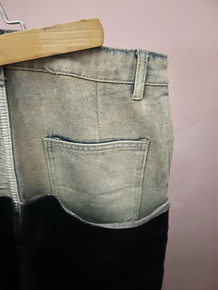 Очень необычные джинсы с контрастным дизайном — сочетание светлого денима и глубокого чёрного цвета создаёт эффект “разделённого” образа. Смотрятся дерзко Артикул: 570242