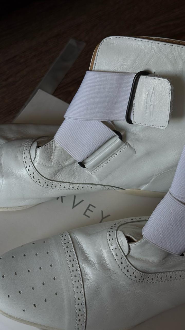 Ботильоны Harvey Nichols из натуральной кожи в минималистичном дизайне. Акцент эластичные ремни, создающие современный силуэт в стиле sport chic. Артикул: 570404
