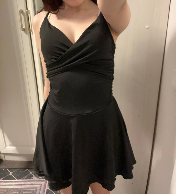 Чёрное короткое платье из шелка . Летнее . У меня рост 154 вес 38 кг немного большое . Артикул: 570469