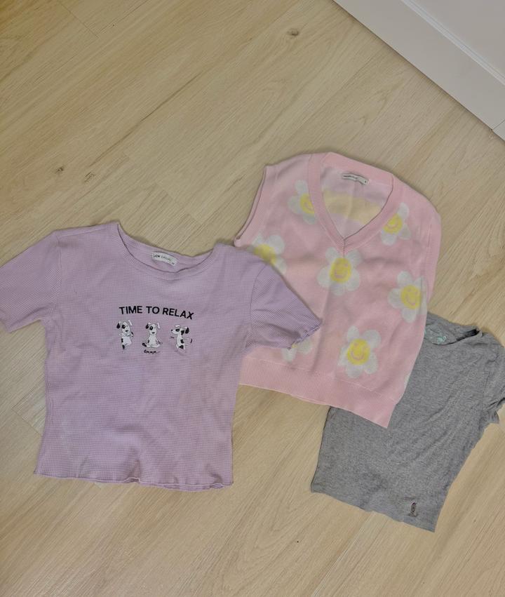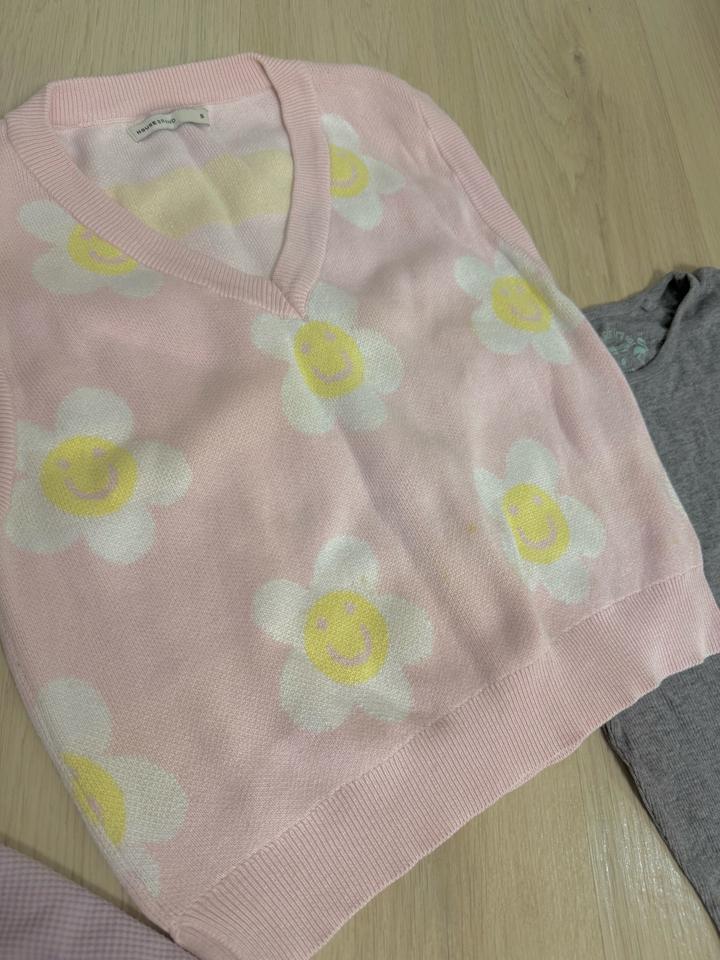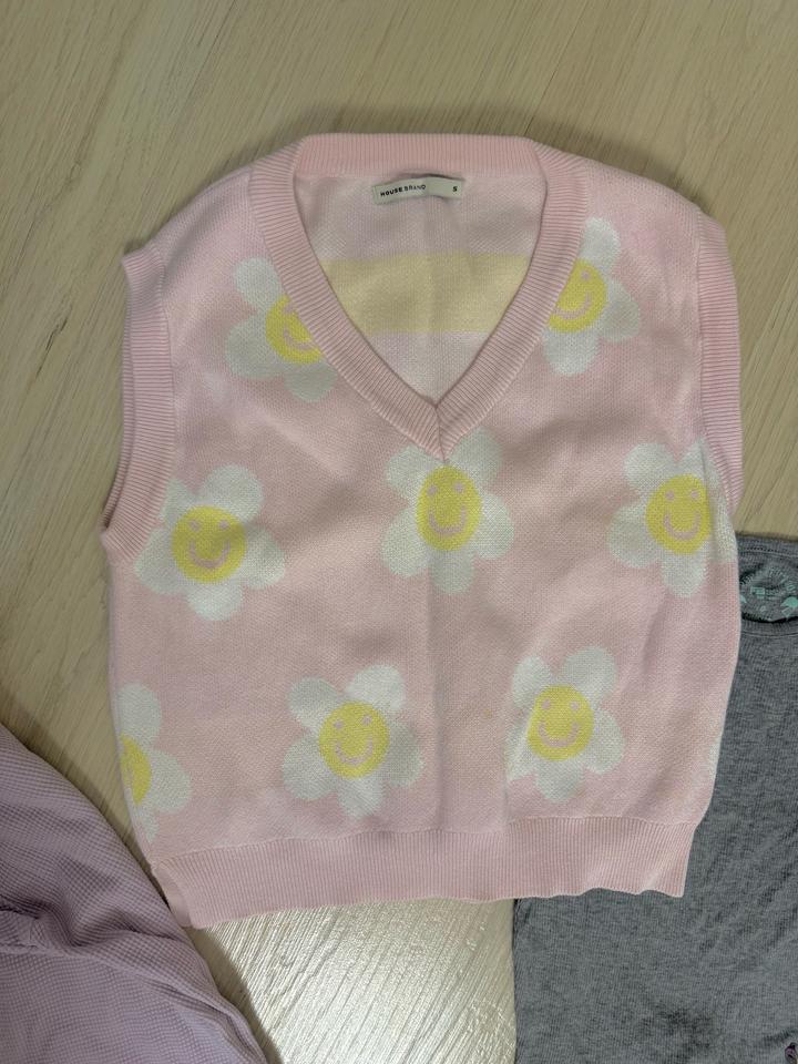 Подойдут для девушки размера XS-S. На розовой жилетке есть пятнышки от том яма, едва заметно, сфотографировала ближе (5 фото). Нужно хорошо постирать. Артикул: 570483