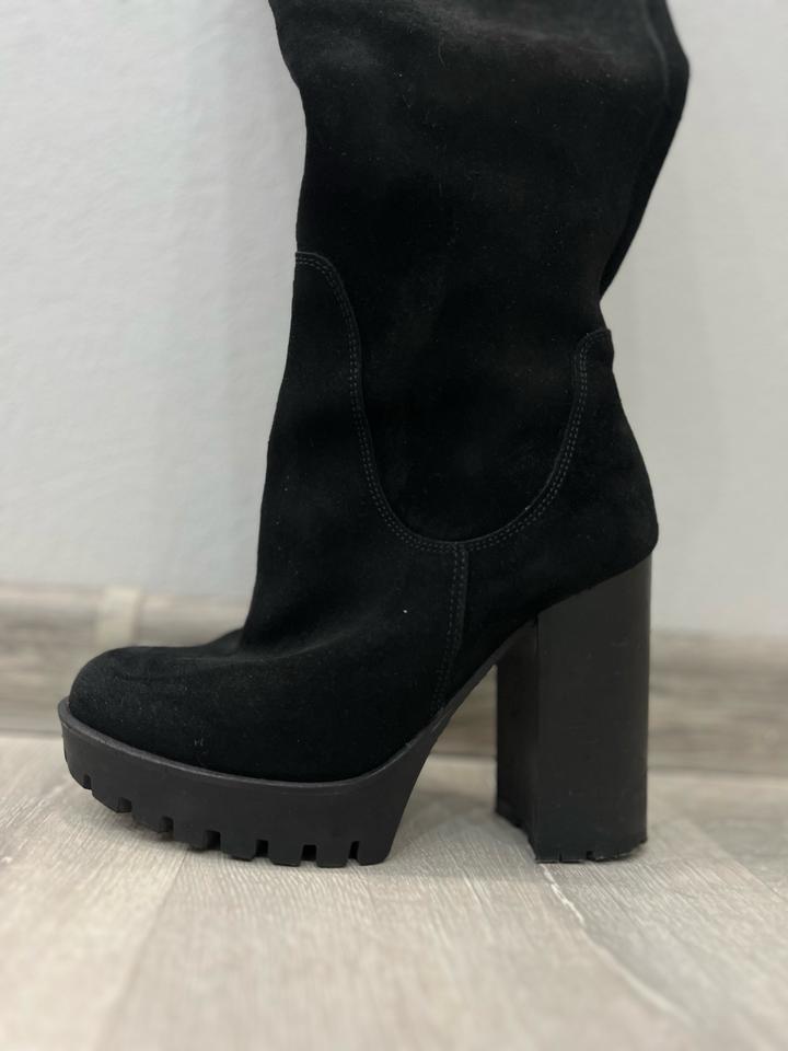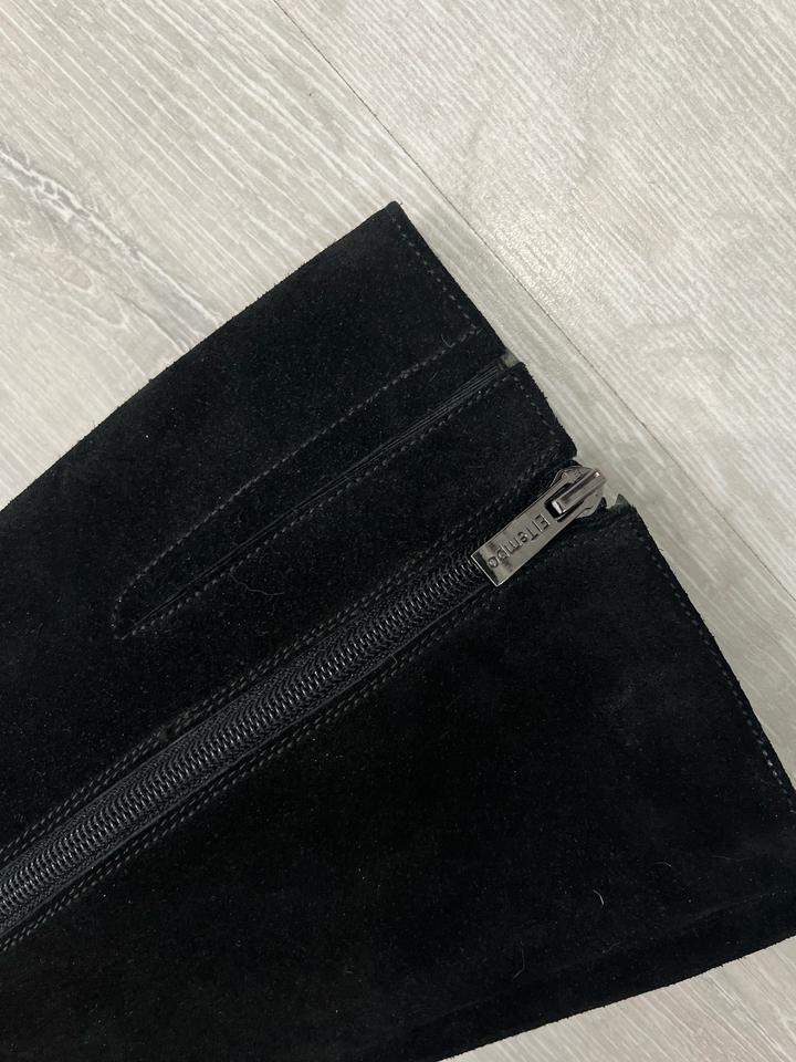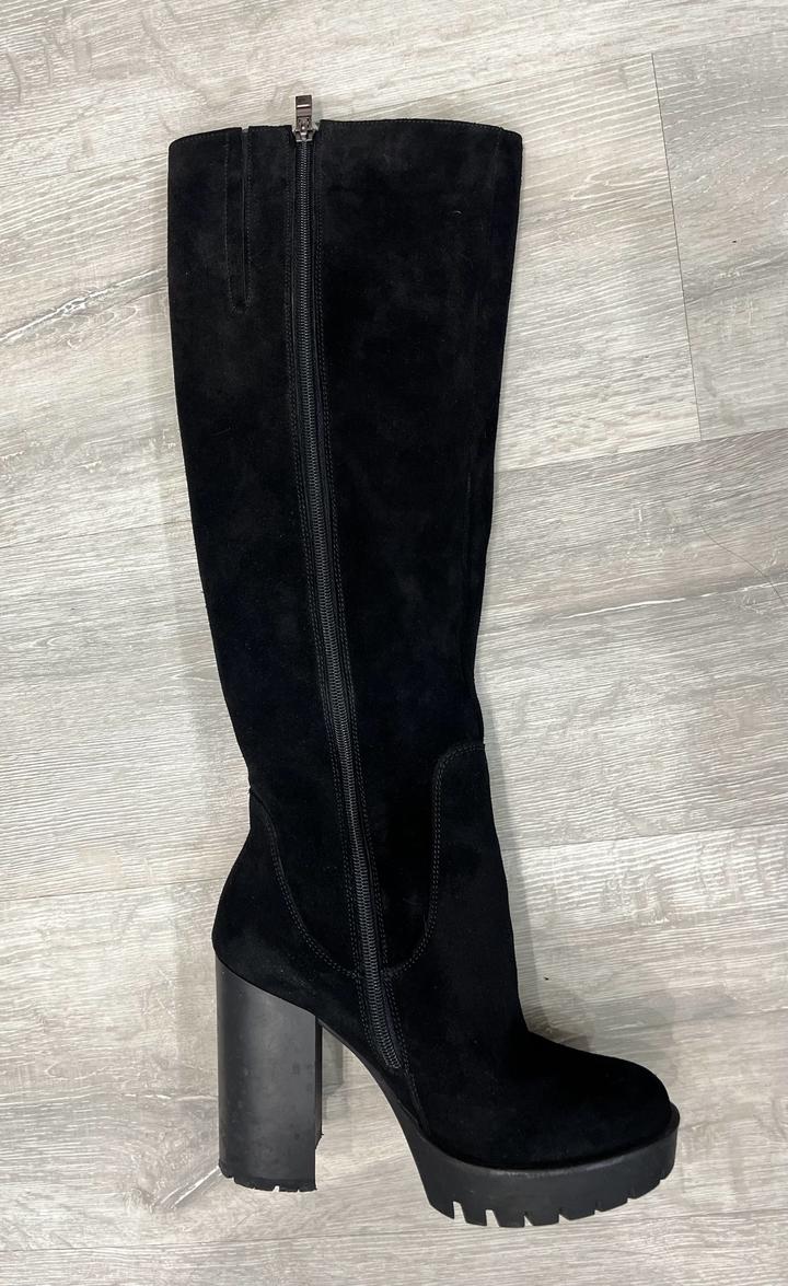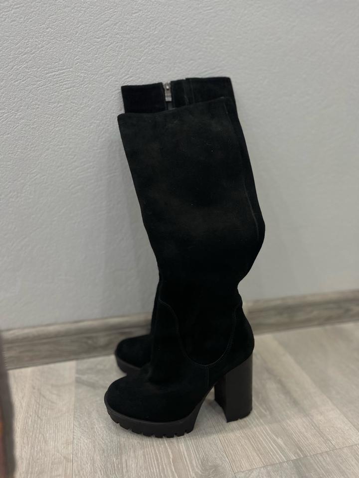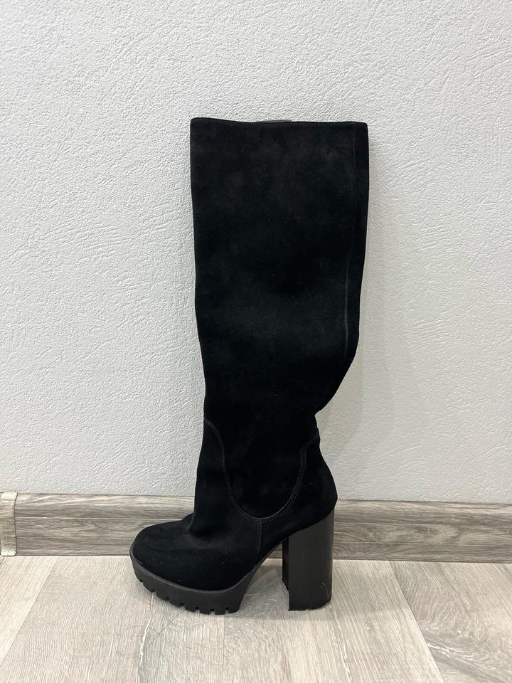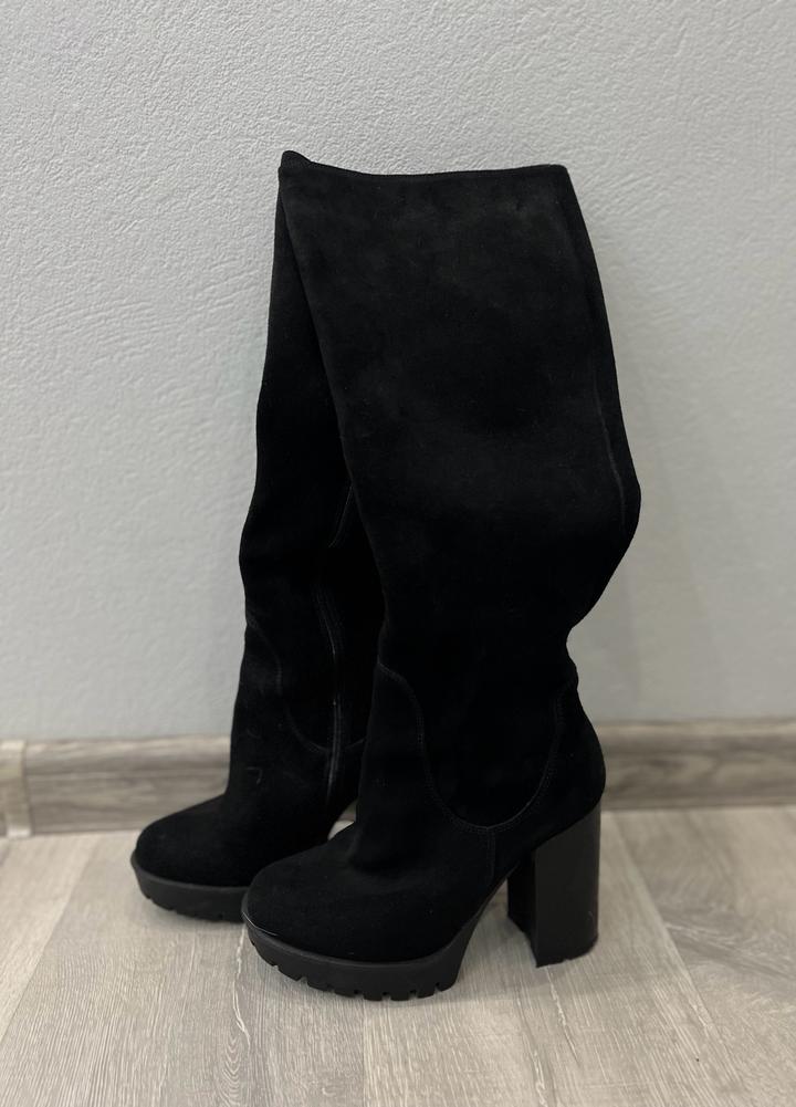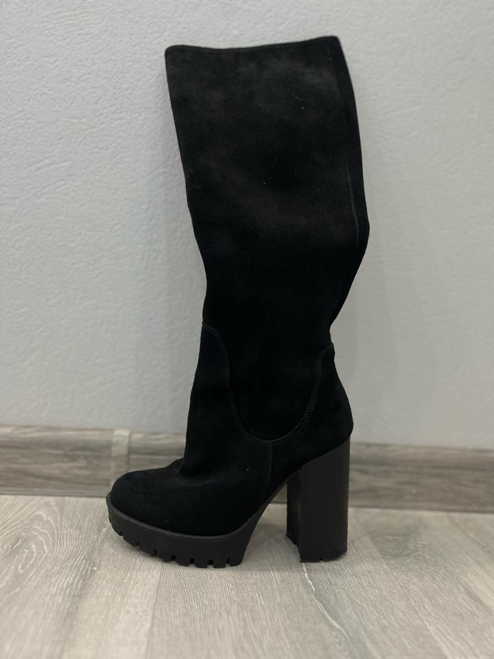 Черные замшевые сапоги демисезонные. В хорошем состоянии без дефектов. Покупала в Lamoda, надевала мало. Размер 36 (23см стелька). Высота каблука 10см. Италия Артикул: 570560
