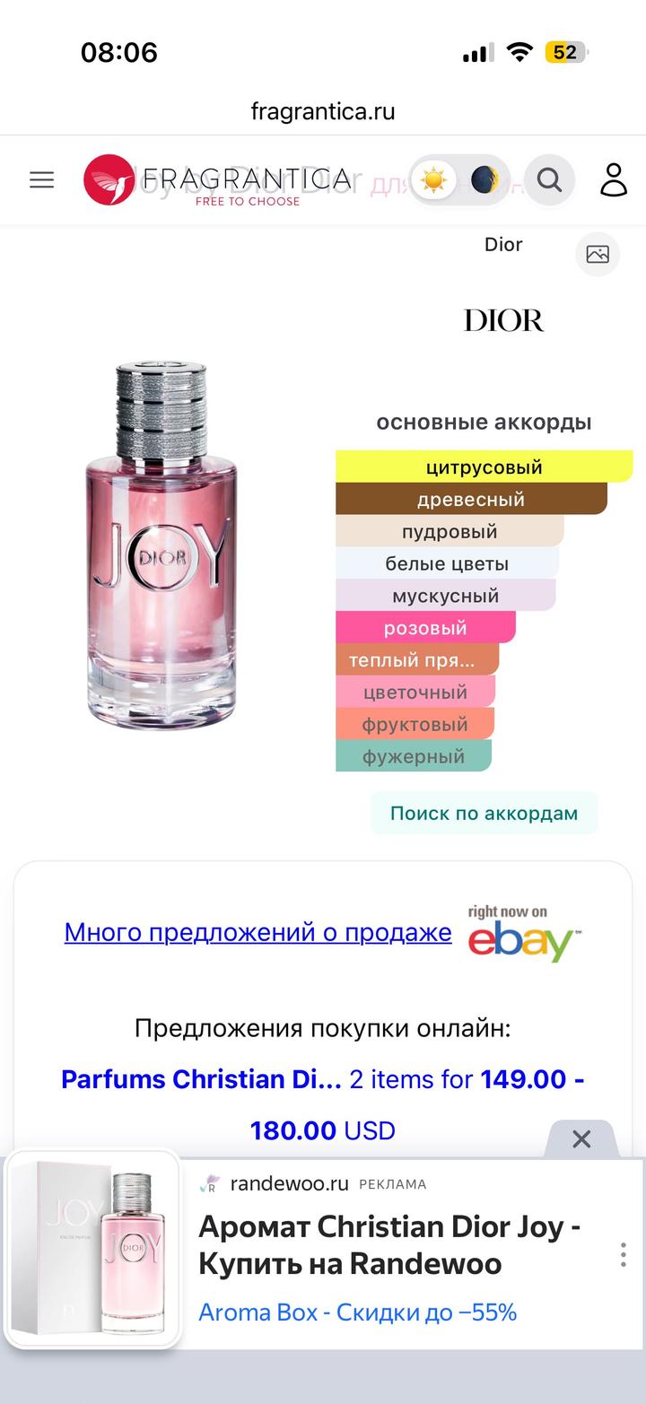 Joy by Dior Dior старичок, сохран отличный от 50 мл в парфюме Это аромат для женщин, он принадлежит к группе цветочные древесно-мускусные. Joy by Dior выпущен в 2018 году. Парфюмер: François Demachy. Верхние ноты: Бергамот и Мандарин; средние ноты: Жасмин, Грасская роза, Персик и Лист черной смородины; базовые ноты: Белый мускус, Сандал, Кедр, Пачули и Бензоин. Артикул: 570584