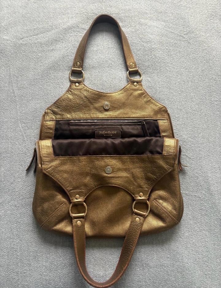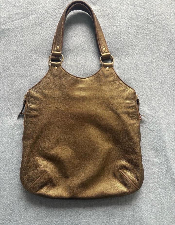 Винтажная сумка Yves Saint Laurent Rive Gauche из мягкой натуральной кожи в благородном бронзовом оттенке. Производство Италия. Очень стильная модель начала 2000-х, сейчас актуальная. Состояние хорошее. Артикул: 570630